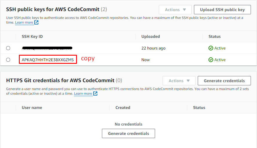 Step 3: Set up the public and private keys for Git and CodeCommit
