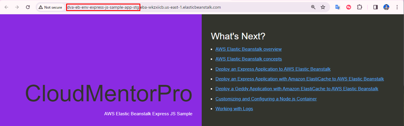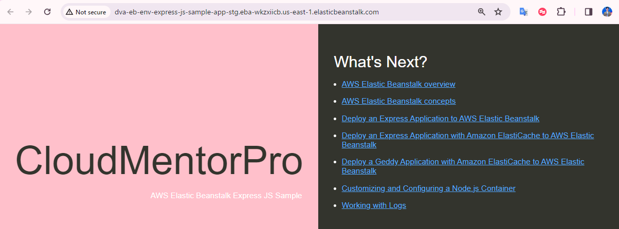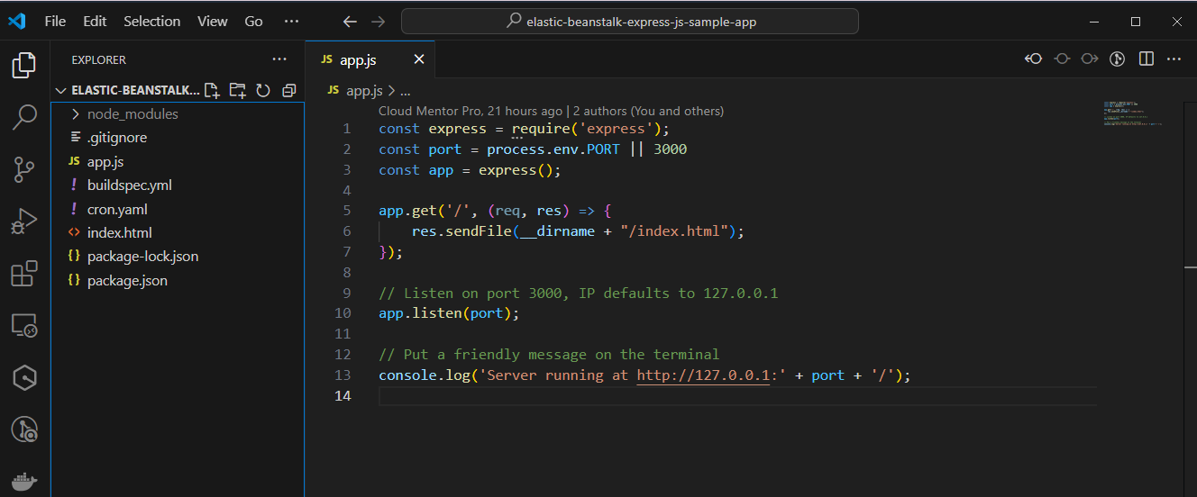 git clone https://github.com/cloudmentor-pro/elastic-beanstalk-express-js-sample-app.gitcd elastic-beanstalk-express-js-sample-app/ -