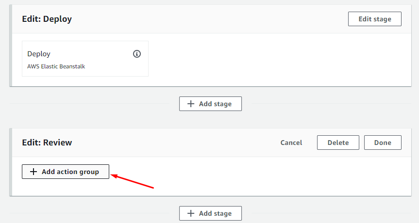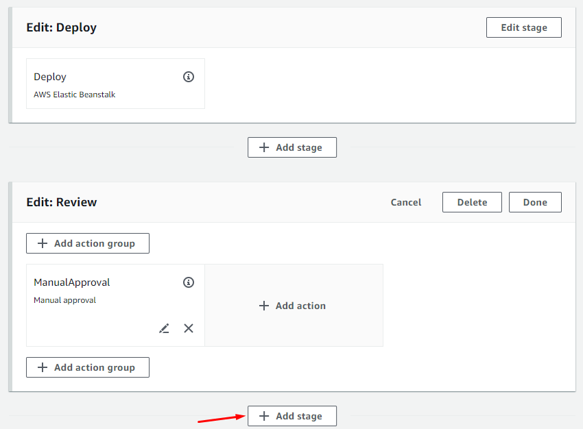 Add thêm 1 Stage bên dưới cùng của Pipeline