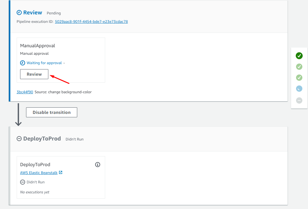 - Manual approval: Đây là một step trong quy trình CICD, cho phép bạn thực hiện review và approval trước khi nhưng thay đôi của ứng dụng được Deploy đến môi trường production