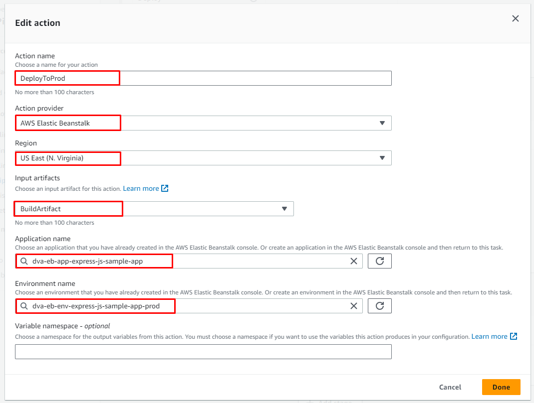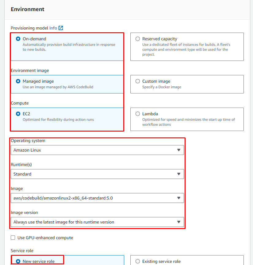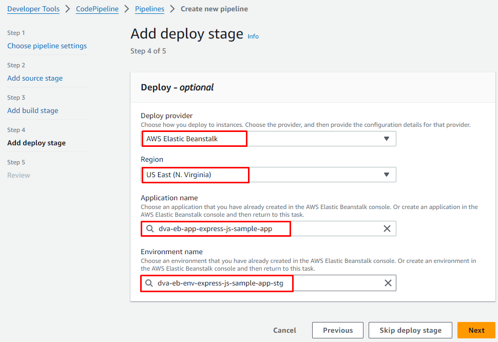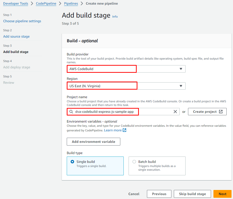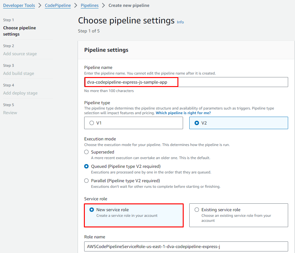 dva-codepipeline-express-js-sample-app - Service role: New service role