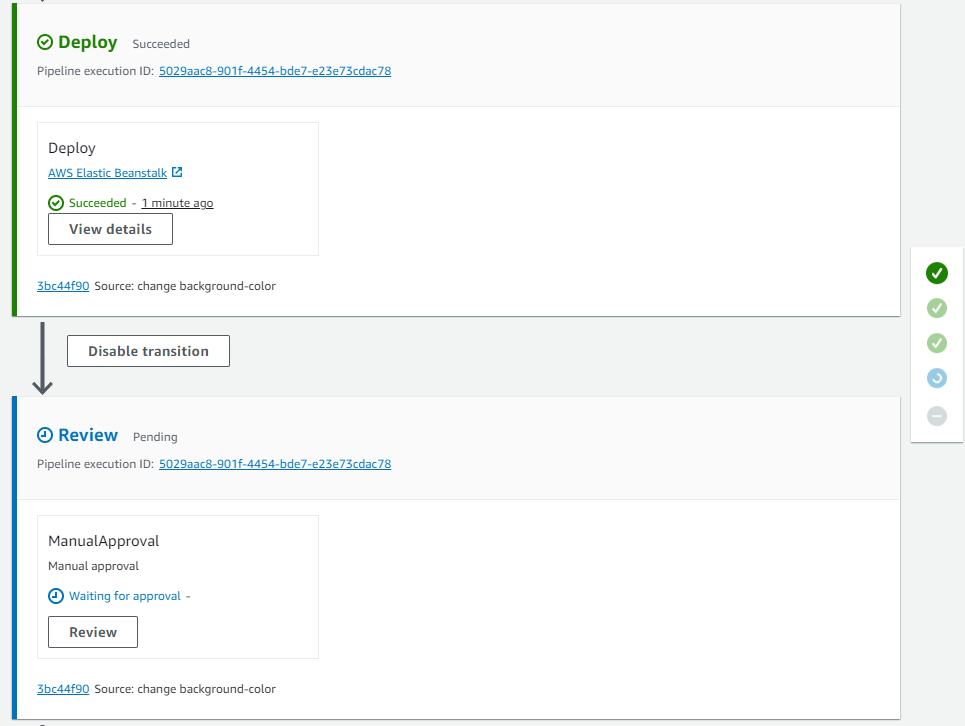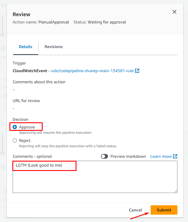 - CodePipeline cho phép phê manual approvals, cho phép các stakeholders review và approve những thay đổi trước khi deployment.