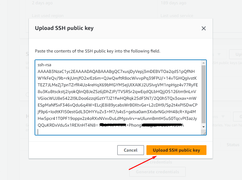 Mở file codecommit_rsa.pub và copy nội dung vào