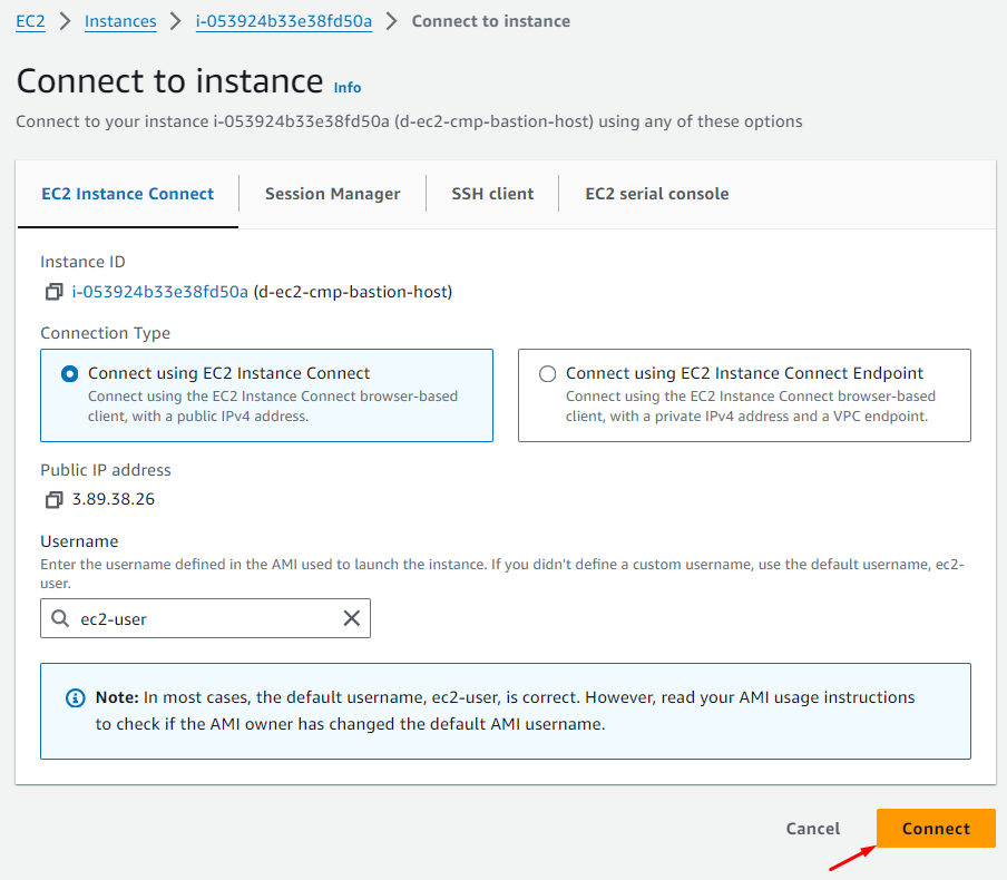 d-ec2-cmp-bastion-host - OS: Default (Amazon Linux 2023)