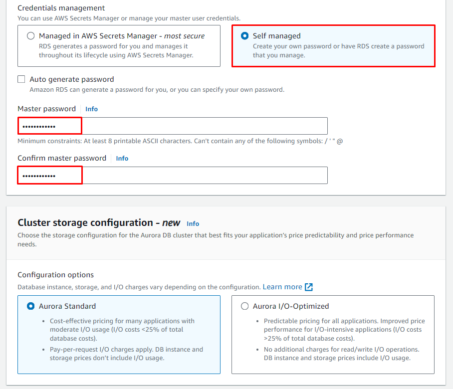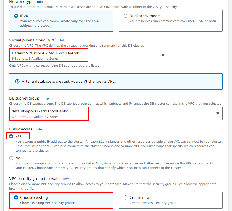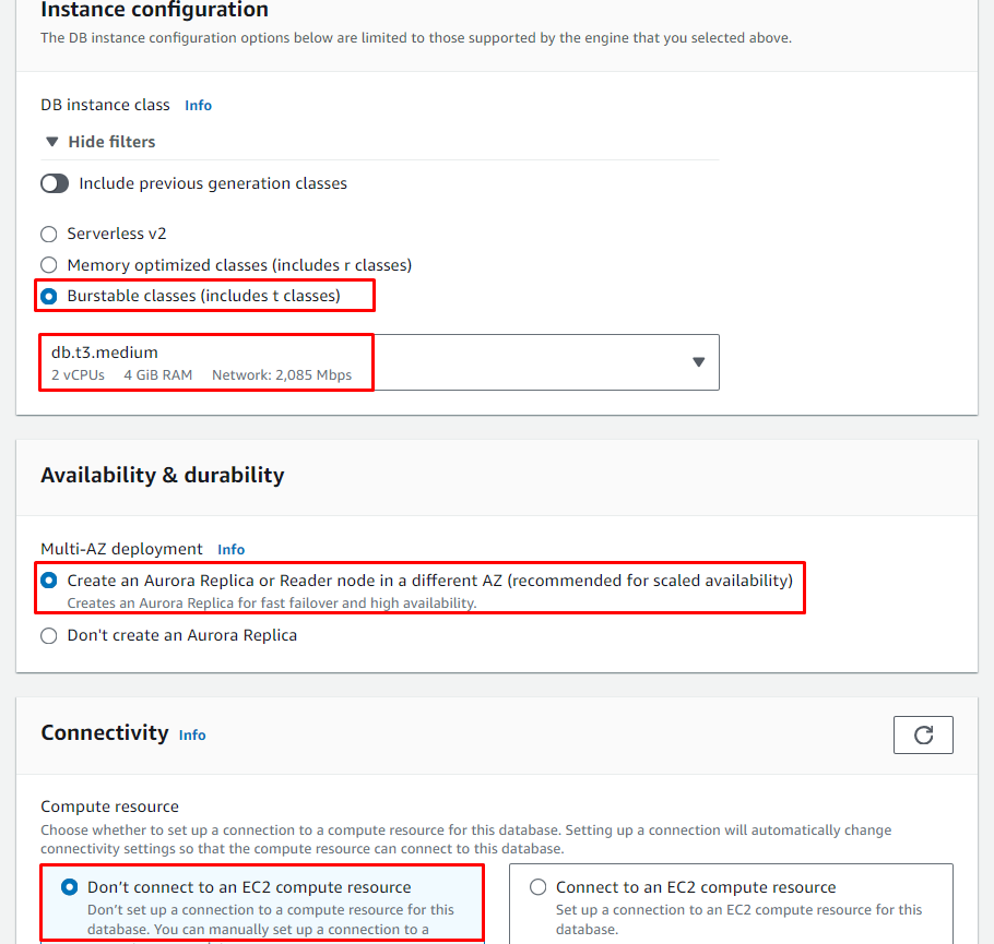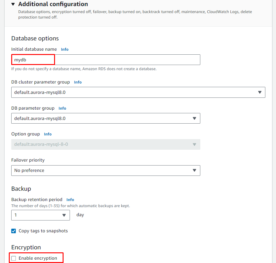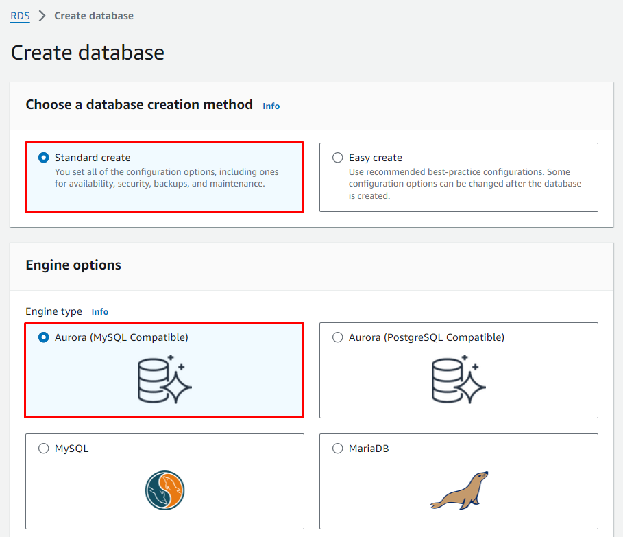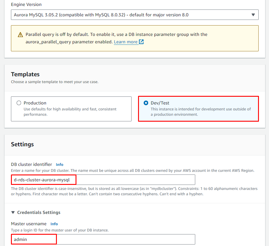 - Engine type: Aurora (MySQL Compatible)