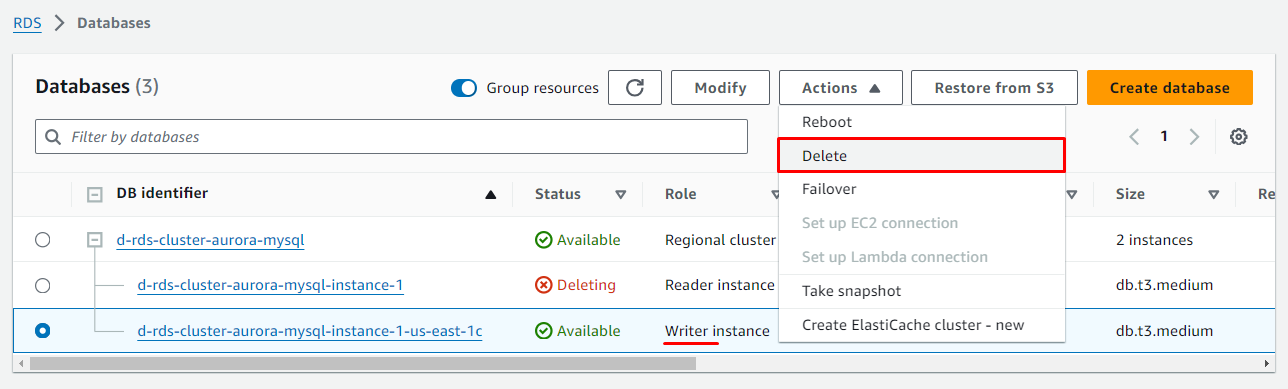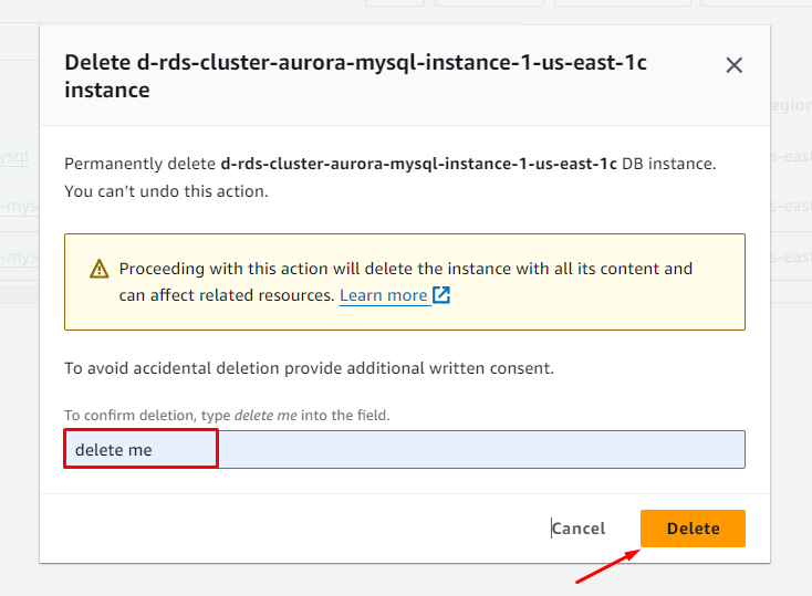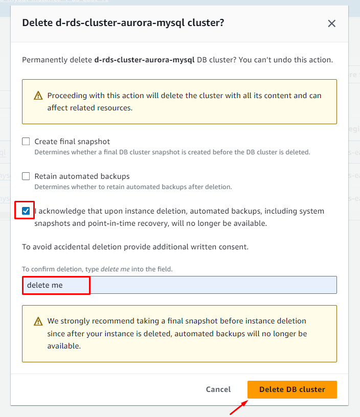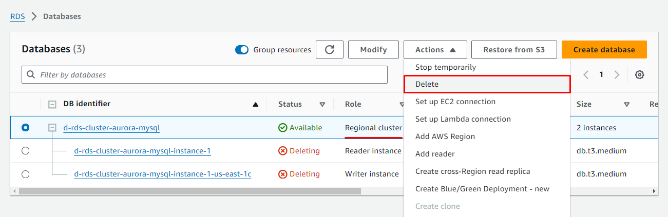 Delete Aurora Cluster