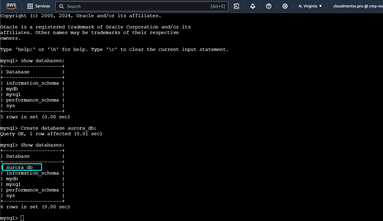 Create database aurora_db;