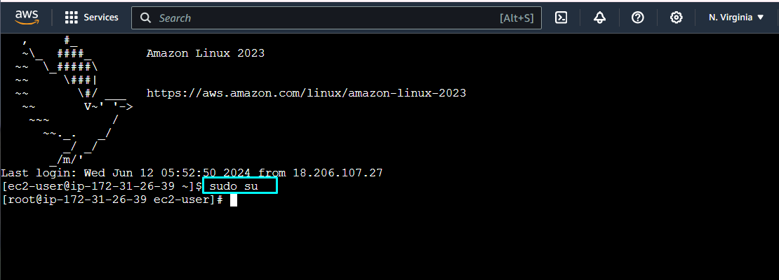 Chuyển sang root user sử dụng command bên dưới