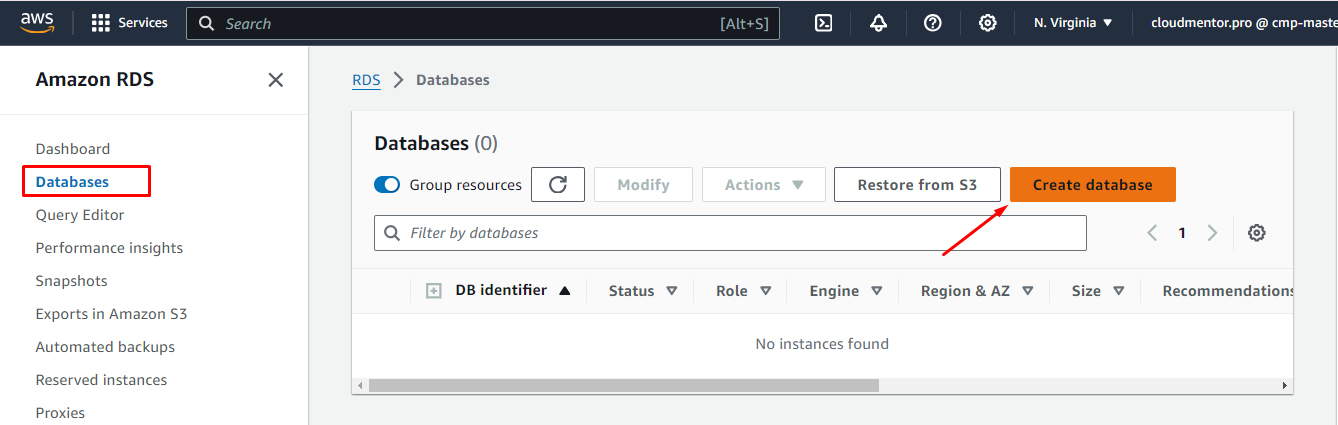 - DB Instance identifier (DB Name):