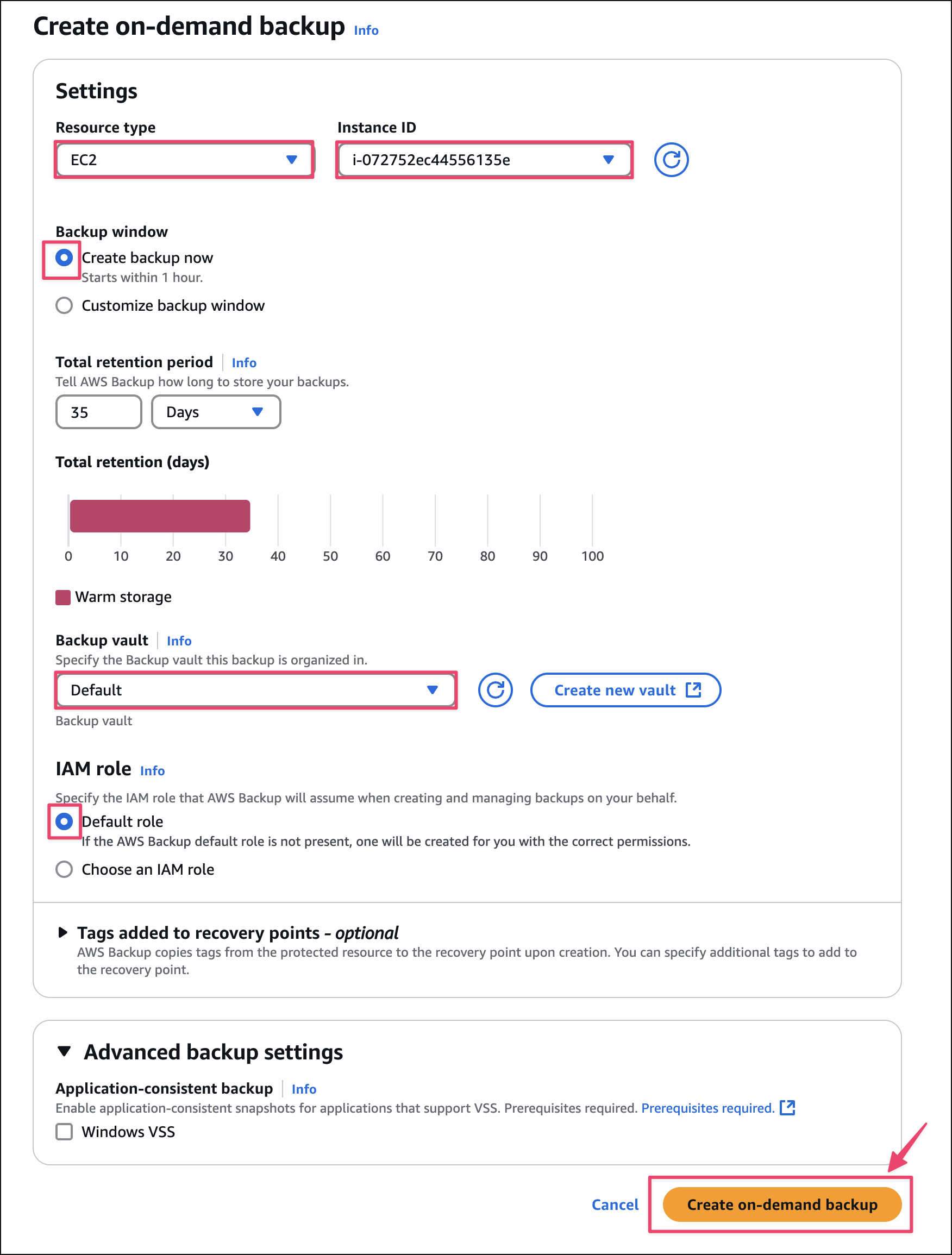 d-saa-ec2-backup-rule - Backup vault: