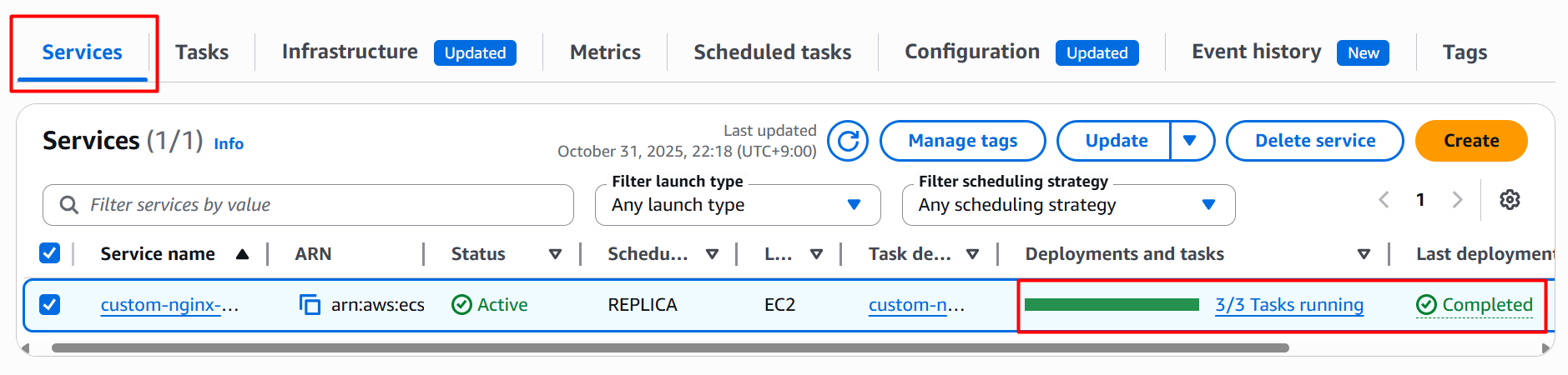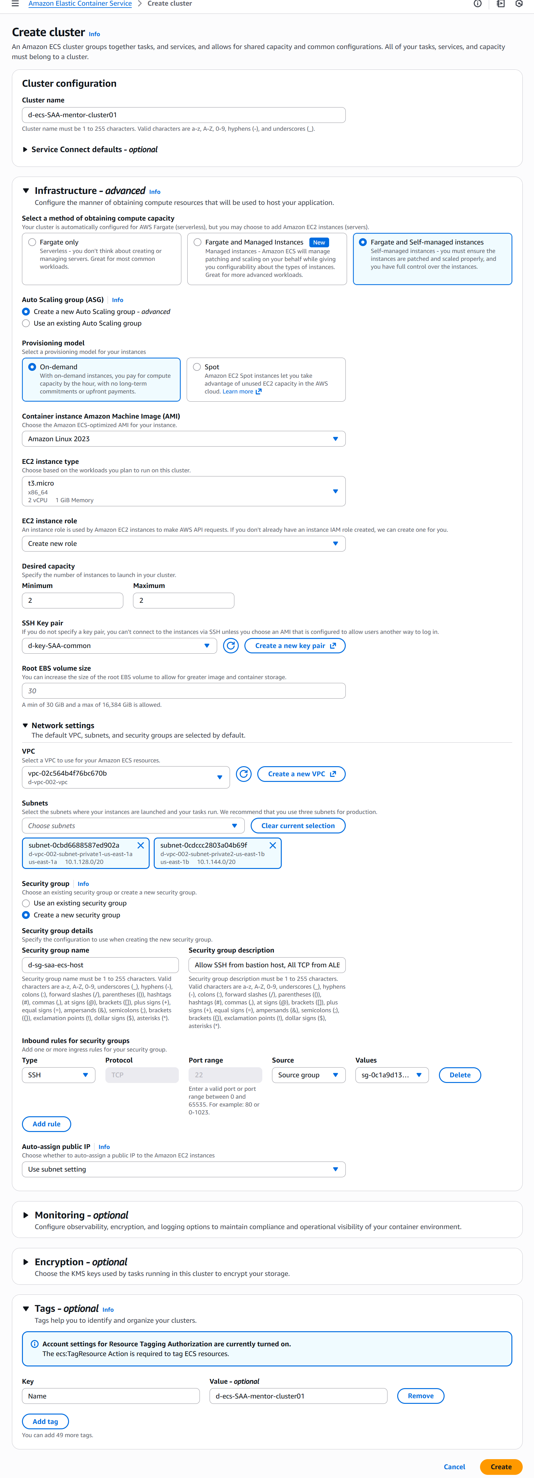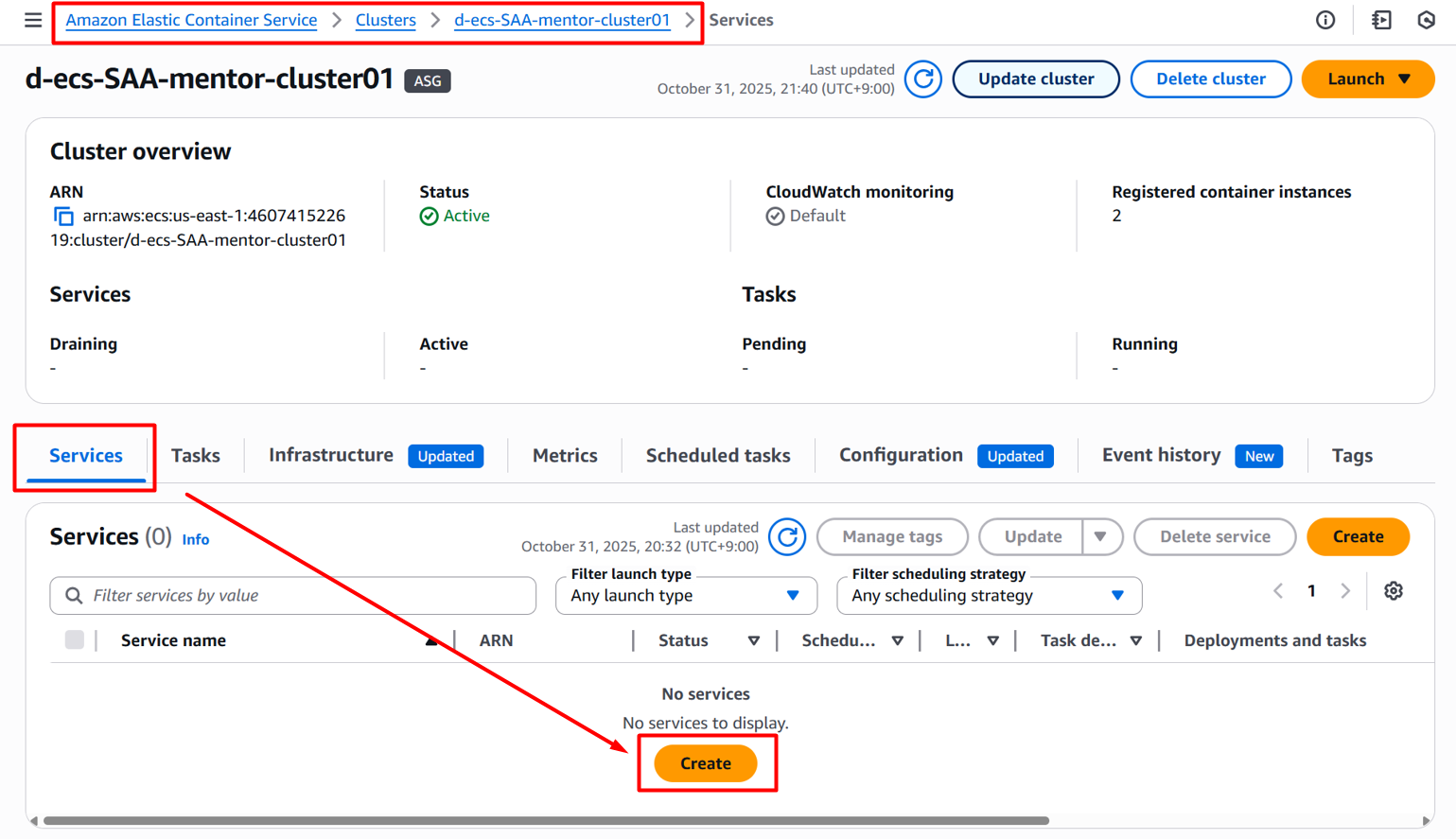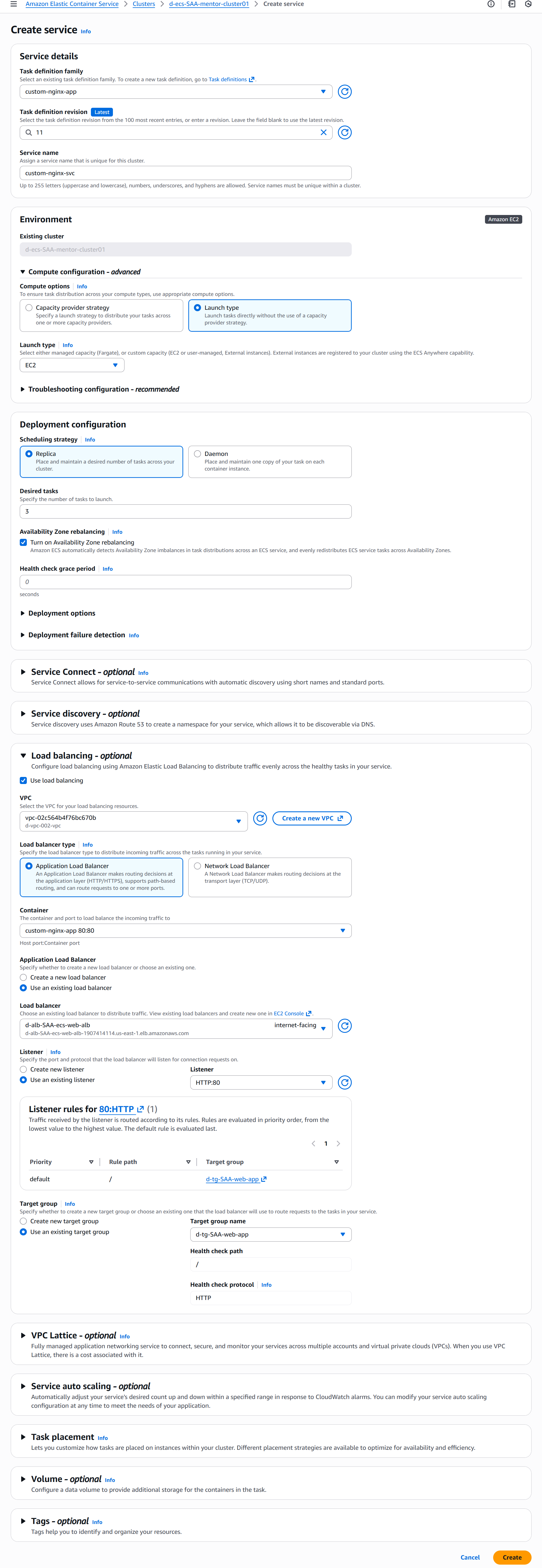 d-ecs-SAA-{yourname}-cluster01 - Tại tab Services -> Create