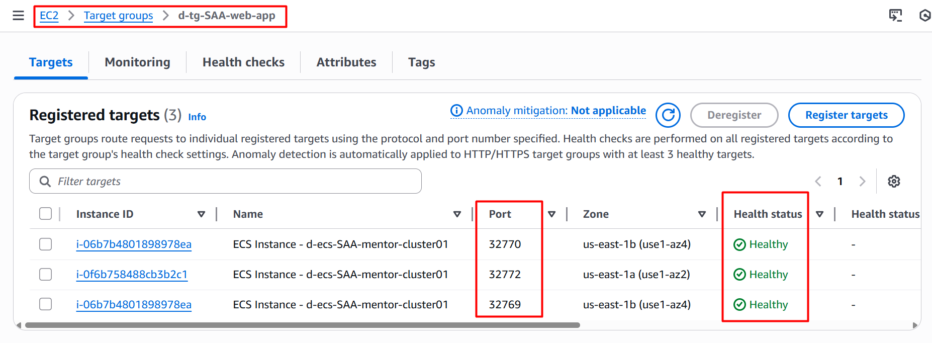Port cũng được sinh ra tự động (đó là lý do mình phải Edit SG của EC2 Allow All TCP từ ALB)