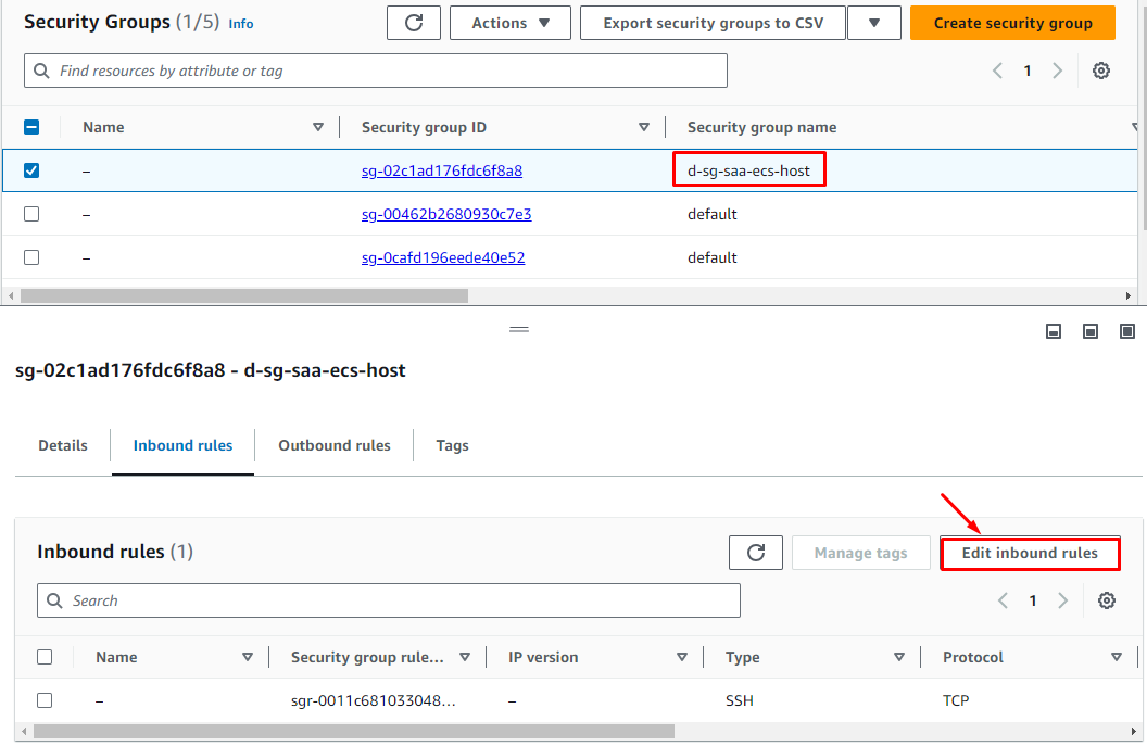 Edit Inbound Rule của SG d-sg-saa-ecs-host