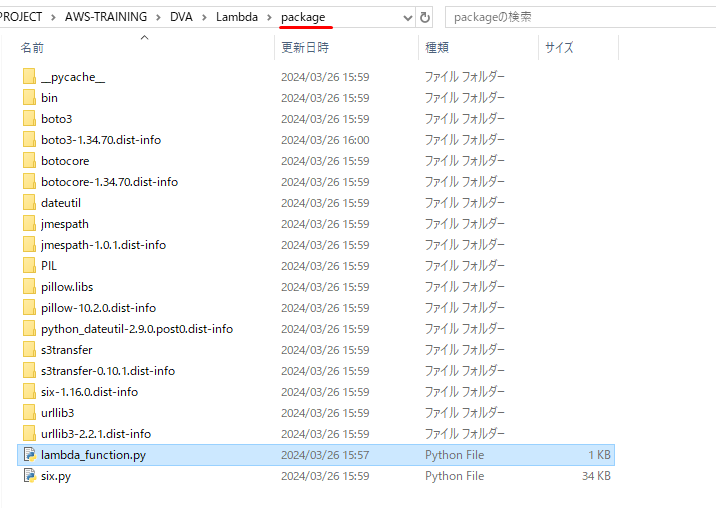 lambda_function.pytạo thư mục tênpackagesau đó cài đặt thư viện Pillow (PIL) và AWS SDK for Python (Boto3). Sử dụng git bash để thực thimkdir package pip install \ --platform manylinux2014_x86_64 \ --target=package \ --implementation cp \ --python-version 3.9 \ --only-binary=:all: --upgrade \ pillow boto3 -