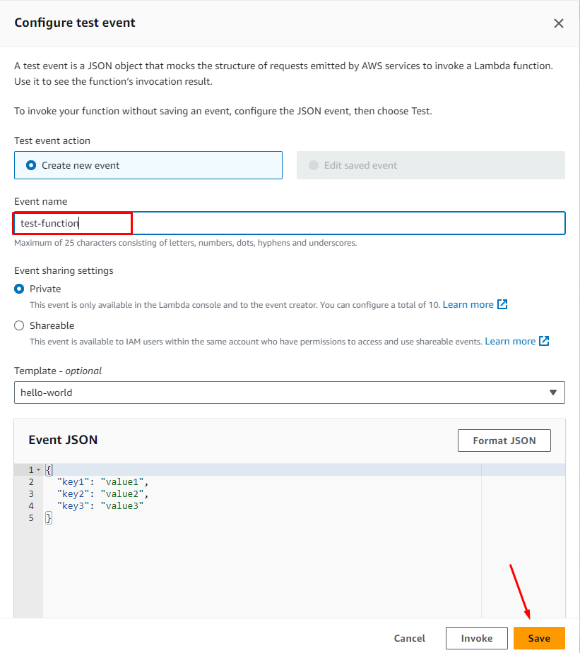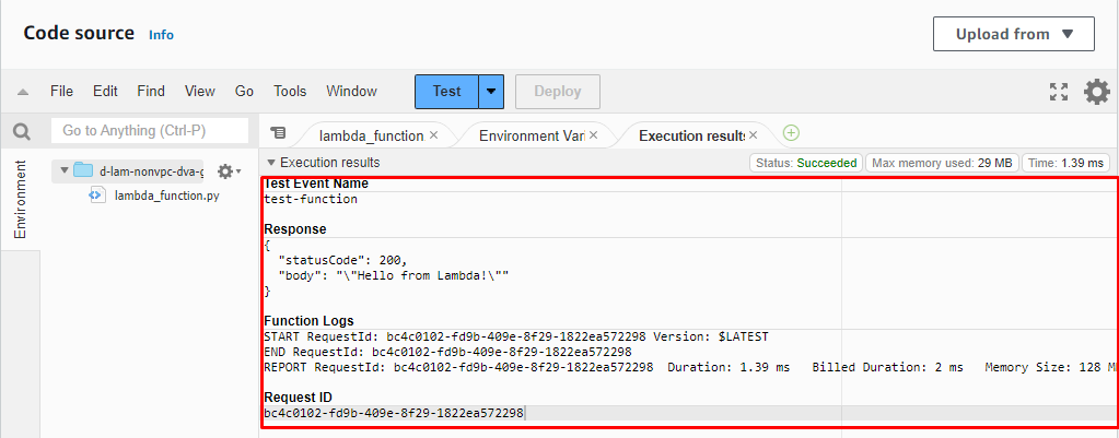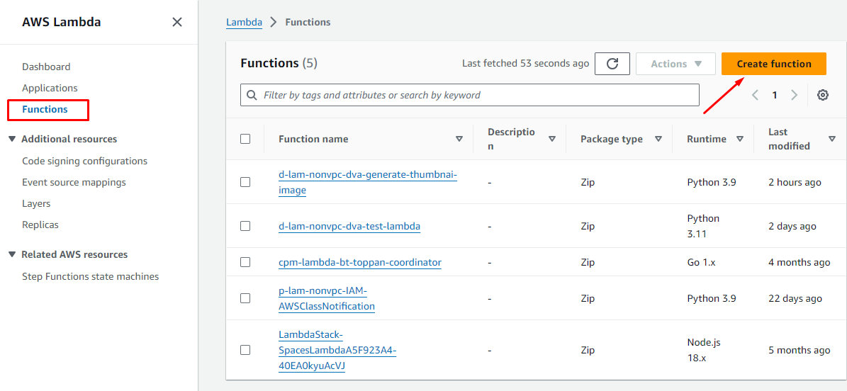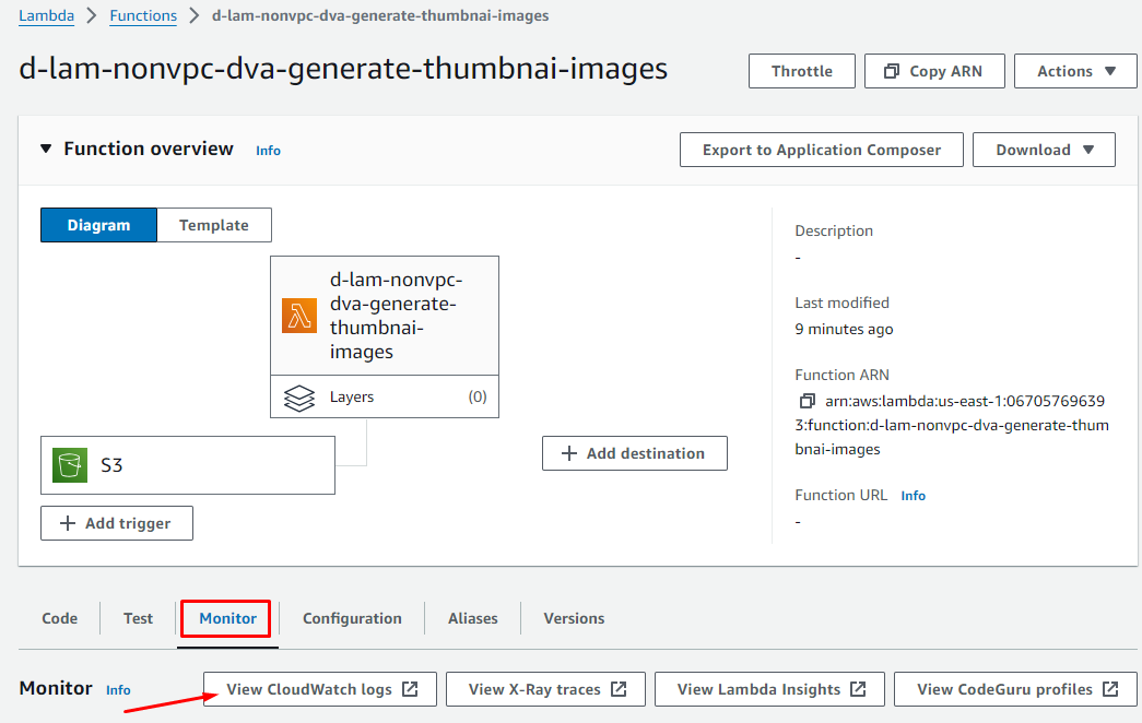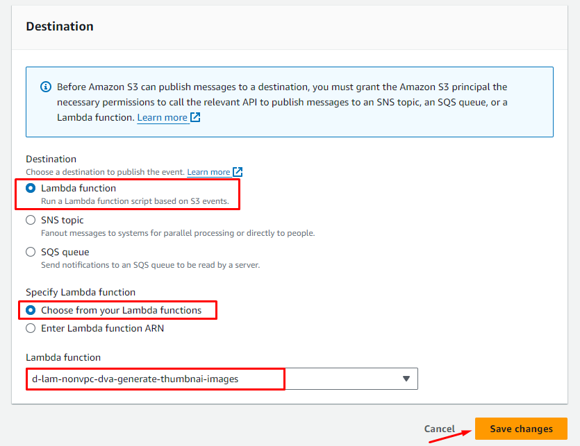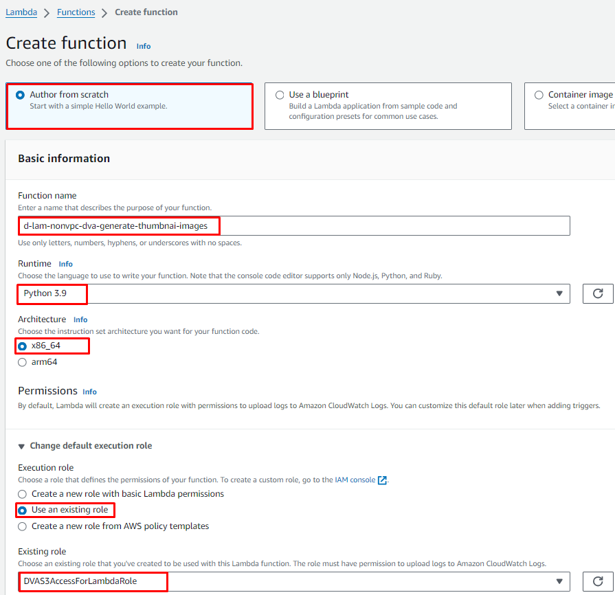 - Execution role: Use an existing role -> DVAS3AccessForLambdaRole