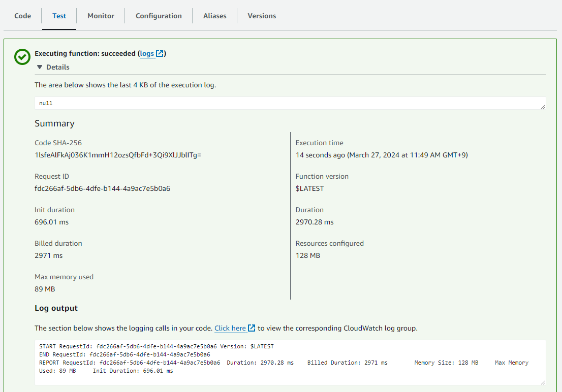 Để xem log của Lambda bạn có thể truy cập Cloudwatch Log