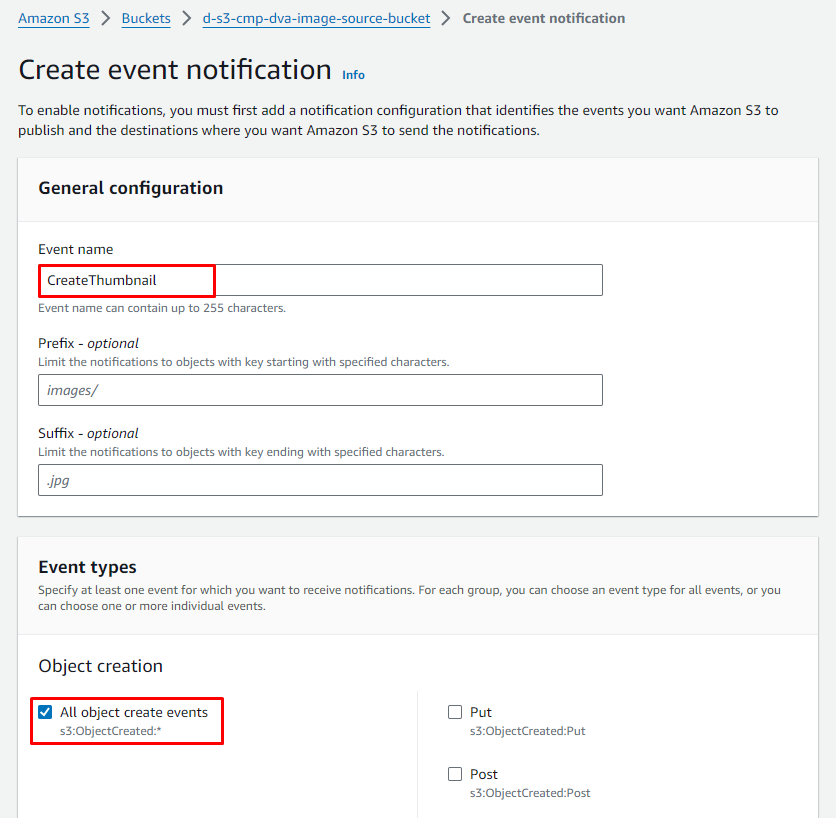Vào S3 Console -> Chọn source bucket -> Properties -> Event notifications