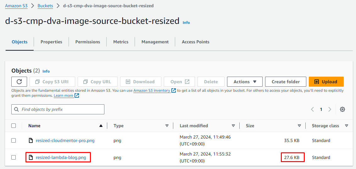 {source bucket name}-resized(Ex:d-s3-cmp-dva-image-source-bucket-resized)