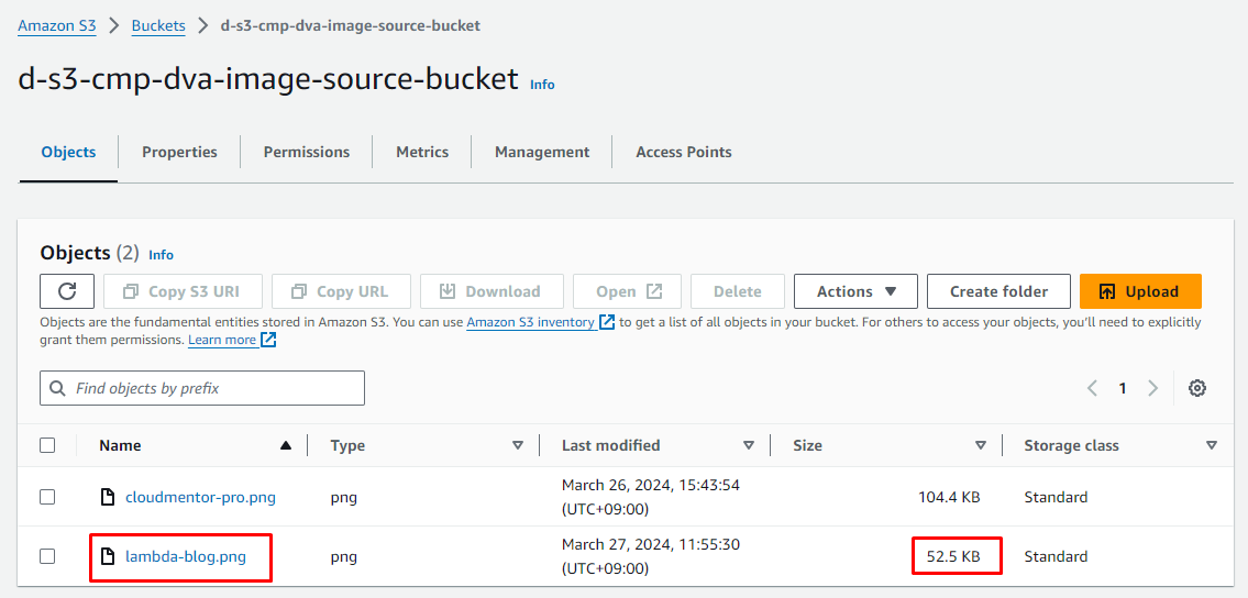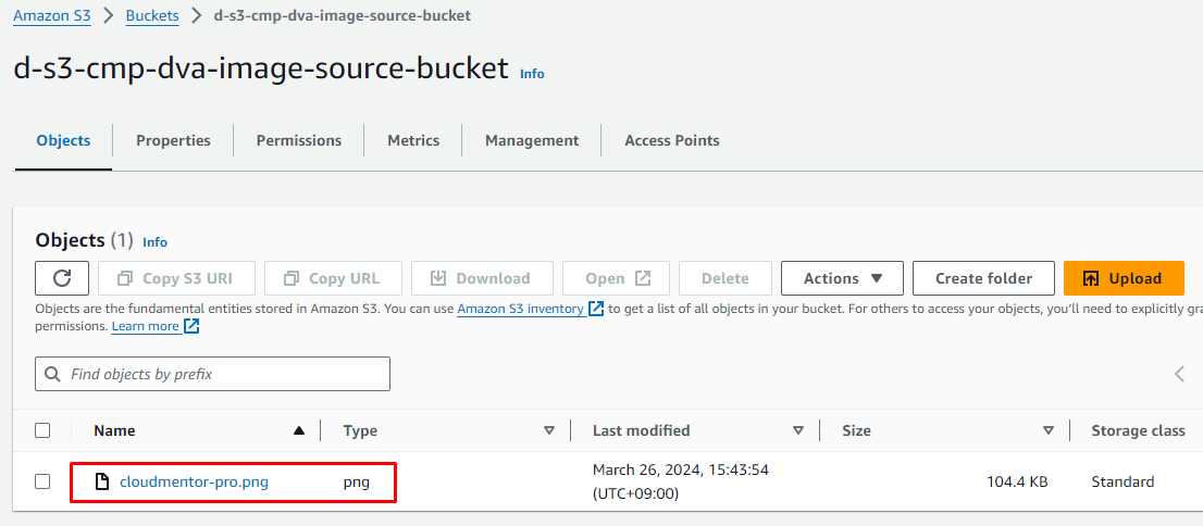 Upload 1 image bất kỳ lên source bucket, để lát nữa chúng ta sẽ thực hiện test code lambda với image này