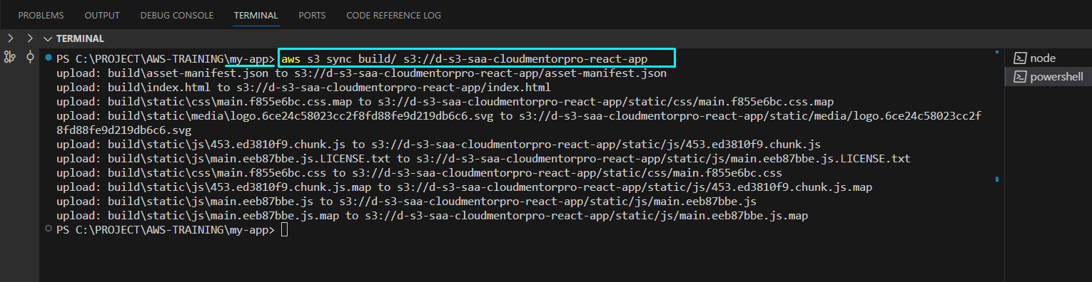 d-s3-saa-[your-name]-react-app(Ex:d-s3-saa-cloudmentorpro-react-app)
