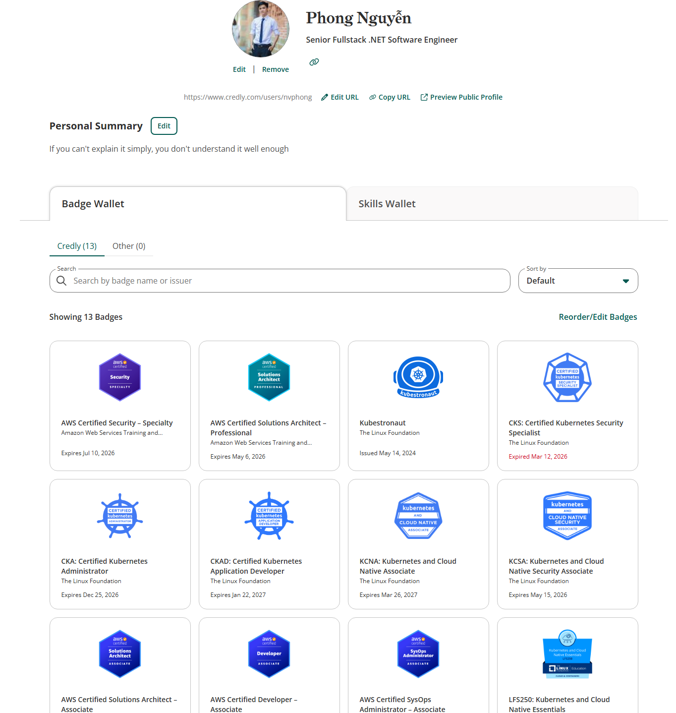 Bạn cũng có thể liên kết tới Credly, từ đó có thể share lên linkedin, social networks ^^!