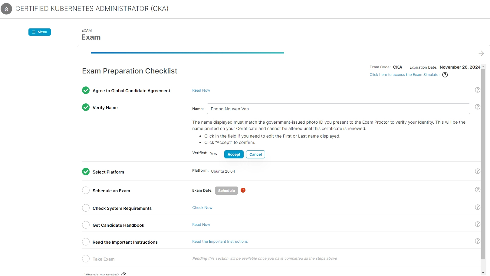 Để thi chứng chỉ CKA (Certified Kubernetes Administrator), bạn sẽ đi qua các bước sau: