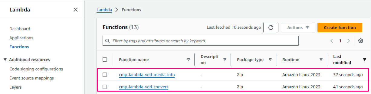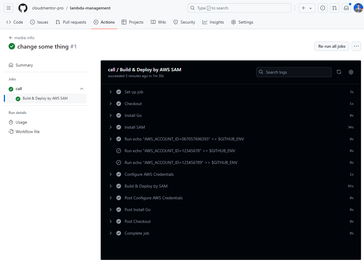 - Demo này sẽ deploy những lambda fucntion nào có thay đổi source code. (Source lambda không thay đổi source code thì không deploy)