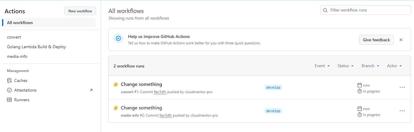 Khi chúng ta merge code vào branch develop hoặc push code lên branch develop, Action này sẽ được kích hoạt.
