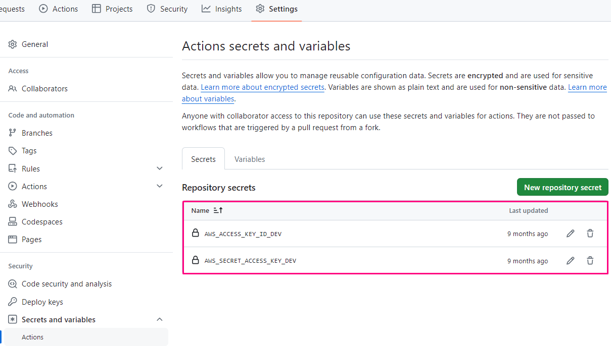 aws-secret-access-key: ${{ secrets.AWS_SECRET_ACCESS_KEY_DEV }}