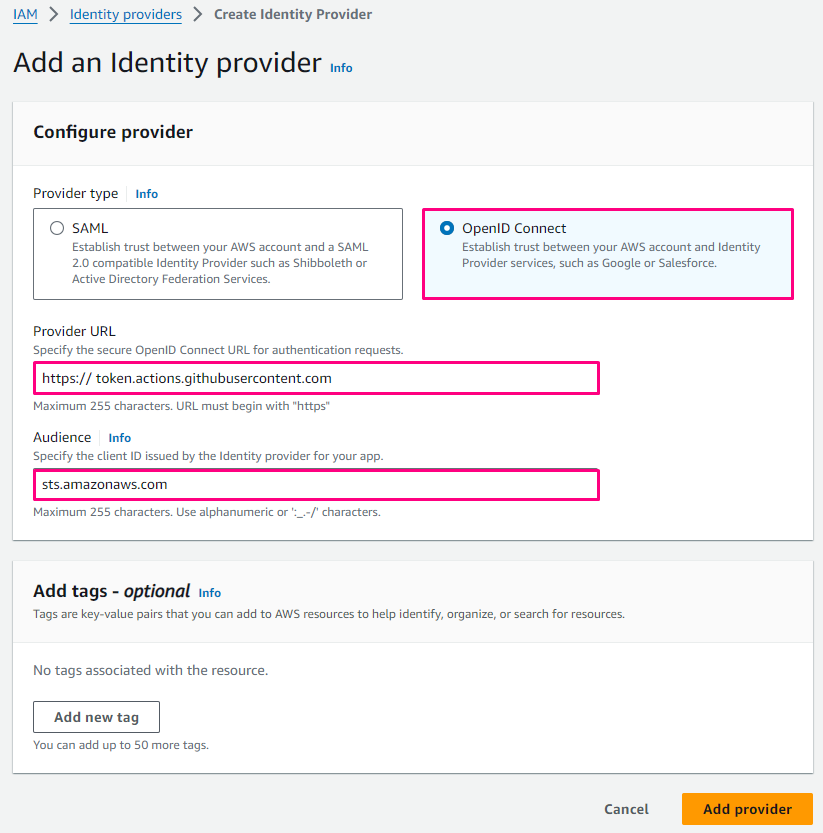 OpenID Connect (OIDC) allows your GitHub Actions workflows to access resources in Amazon Web Services (AWS), without needing to store the AWS credentials as long-lived GitHub secrets.