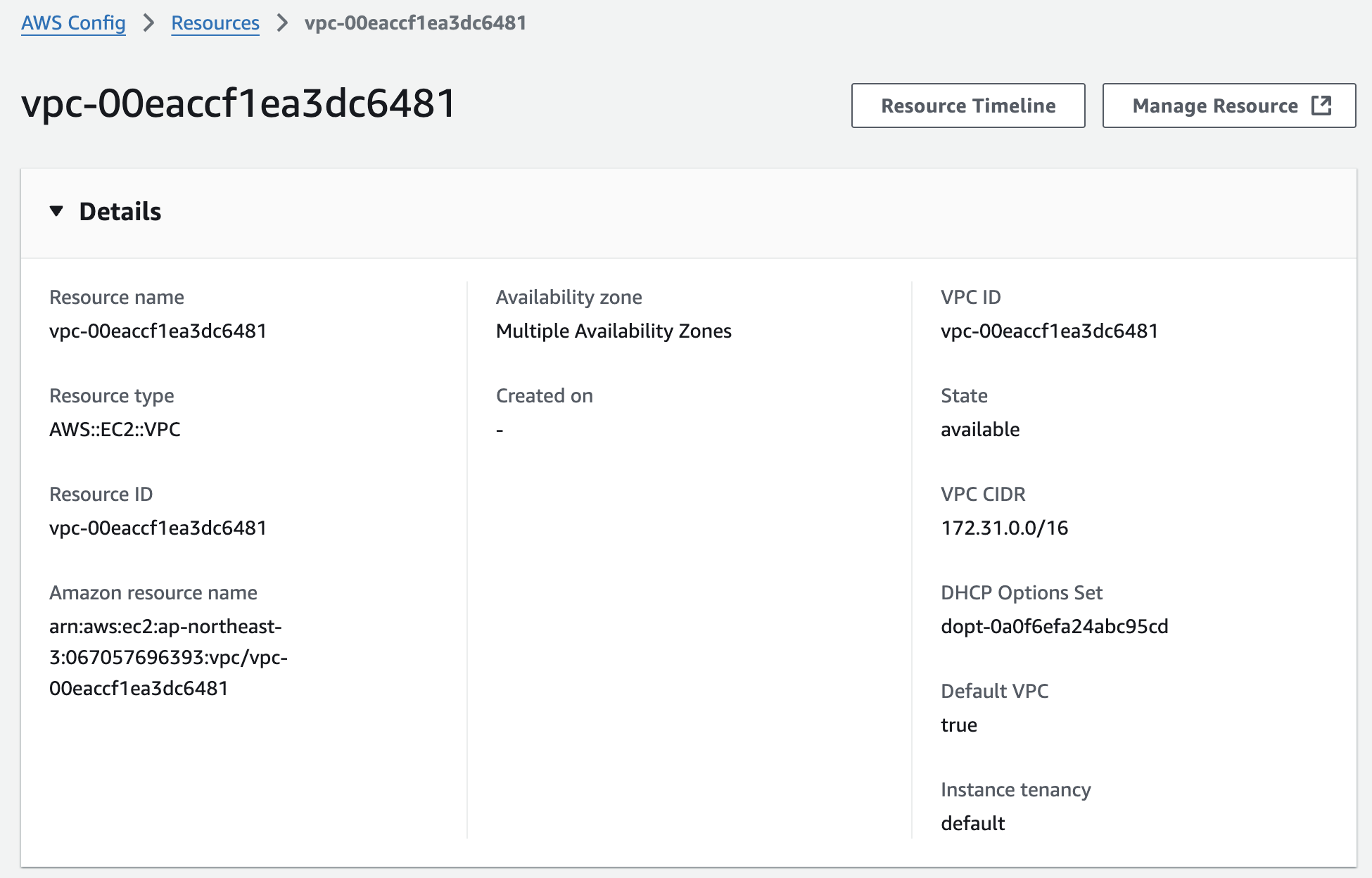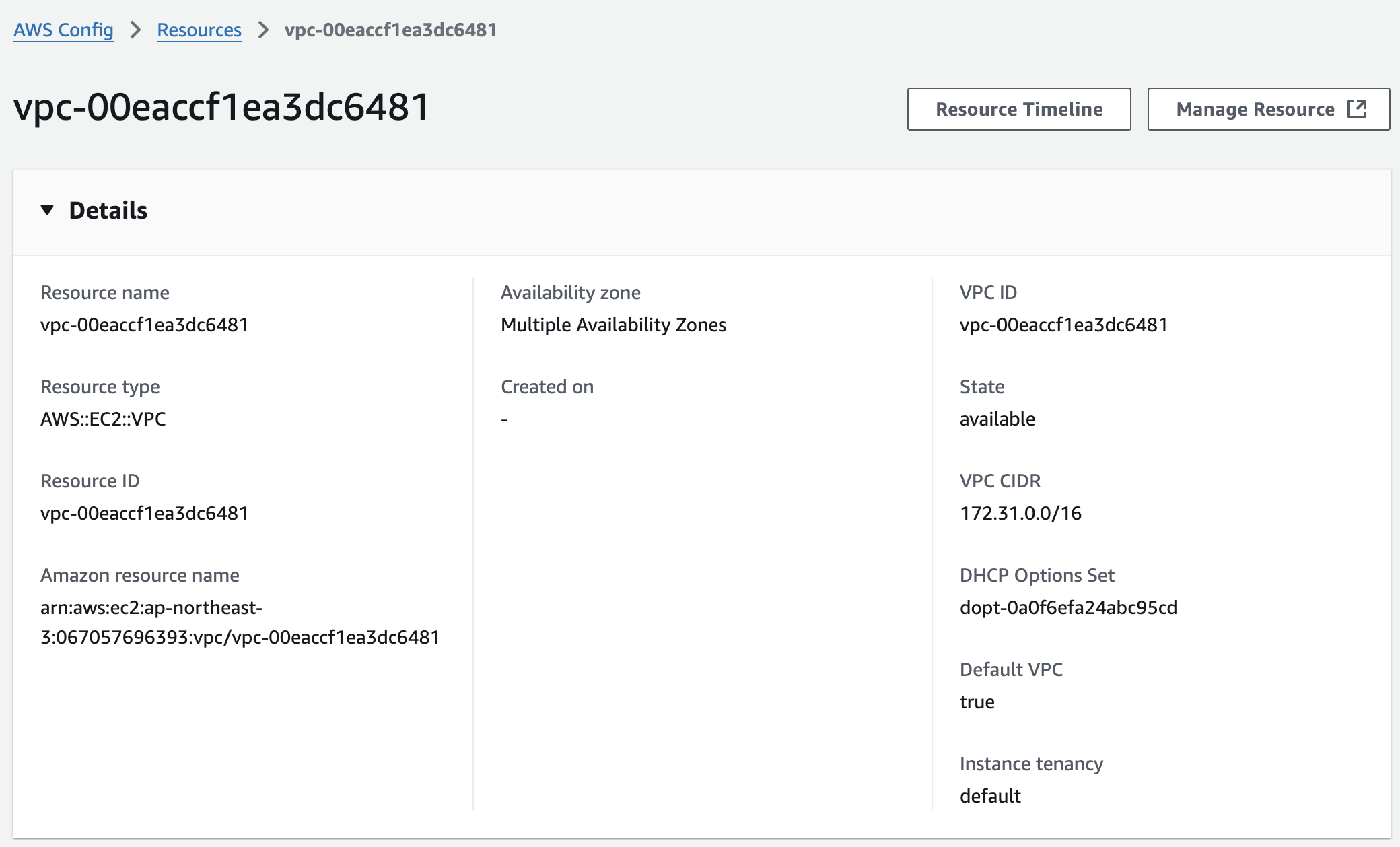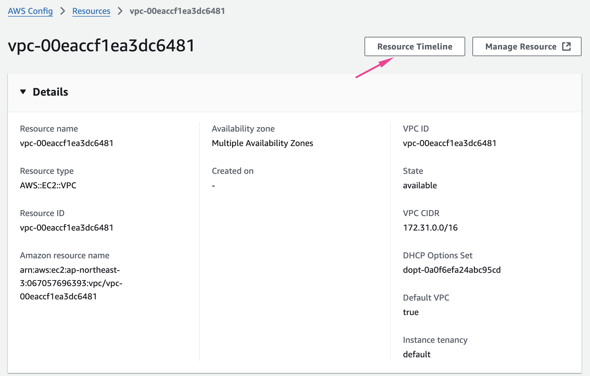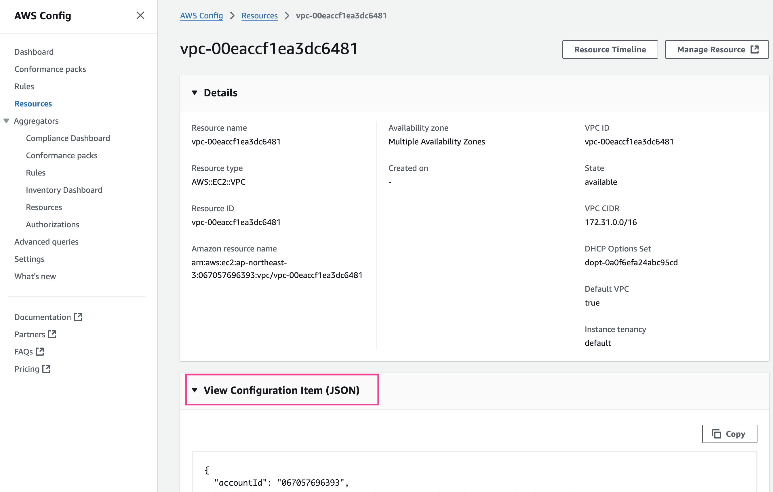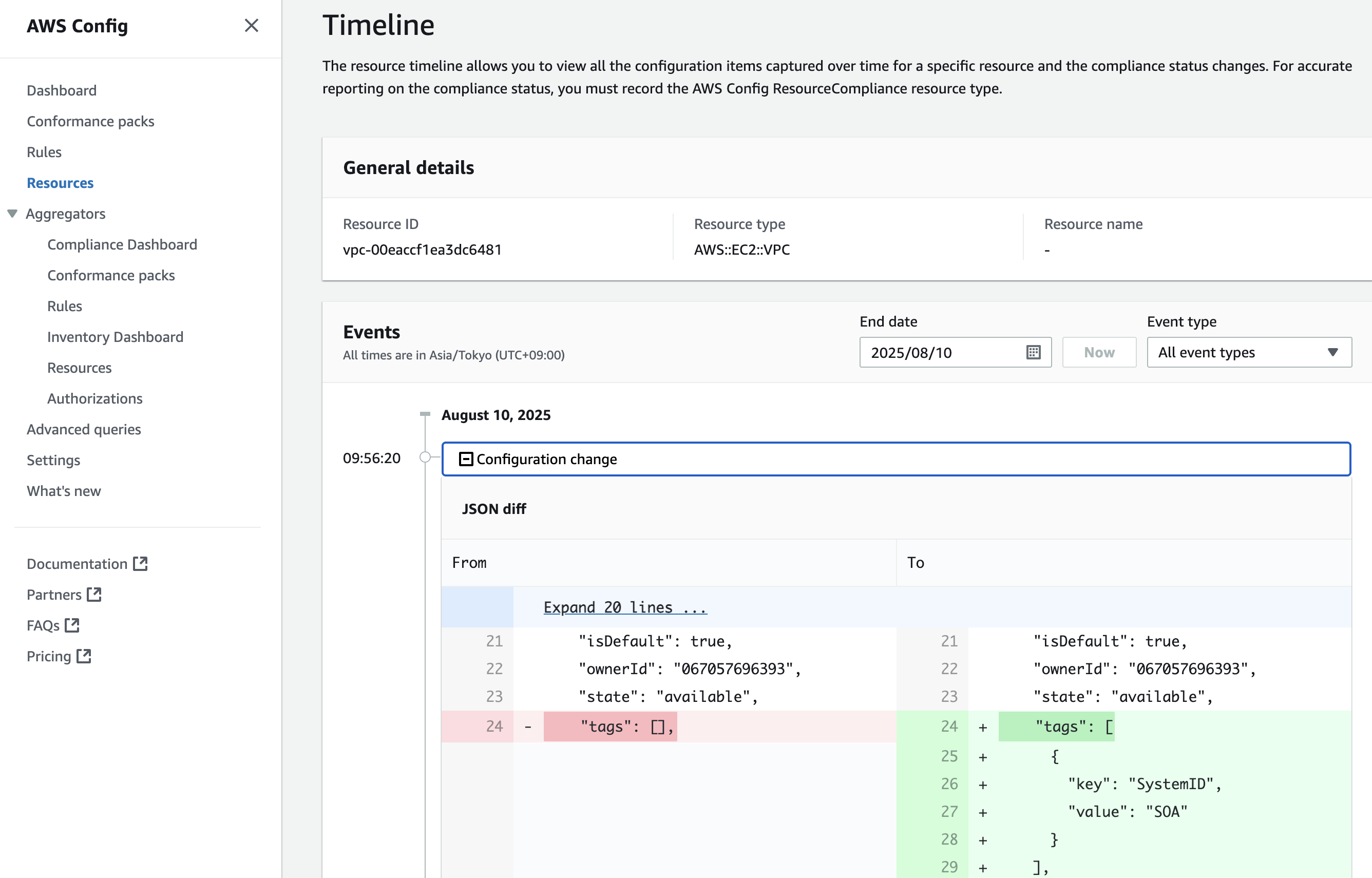Sẽ mất khoảng 10-15 phút để thay đổi config được phản ánh trong AWS Config Resource Timeline