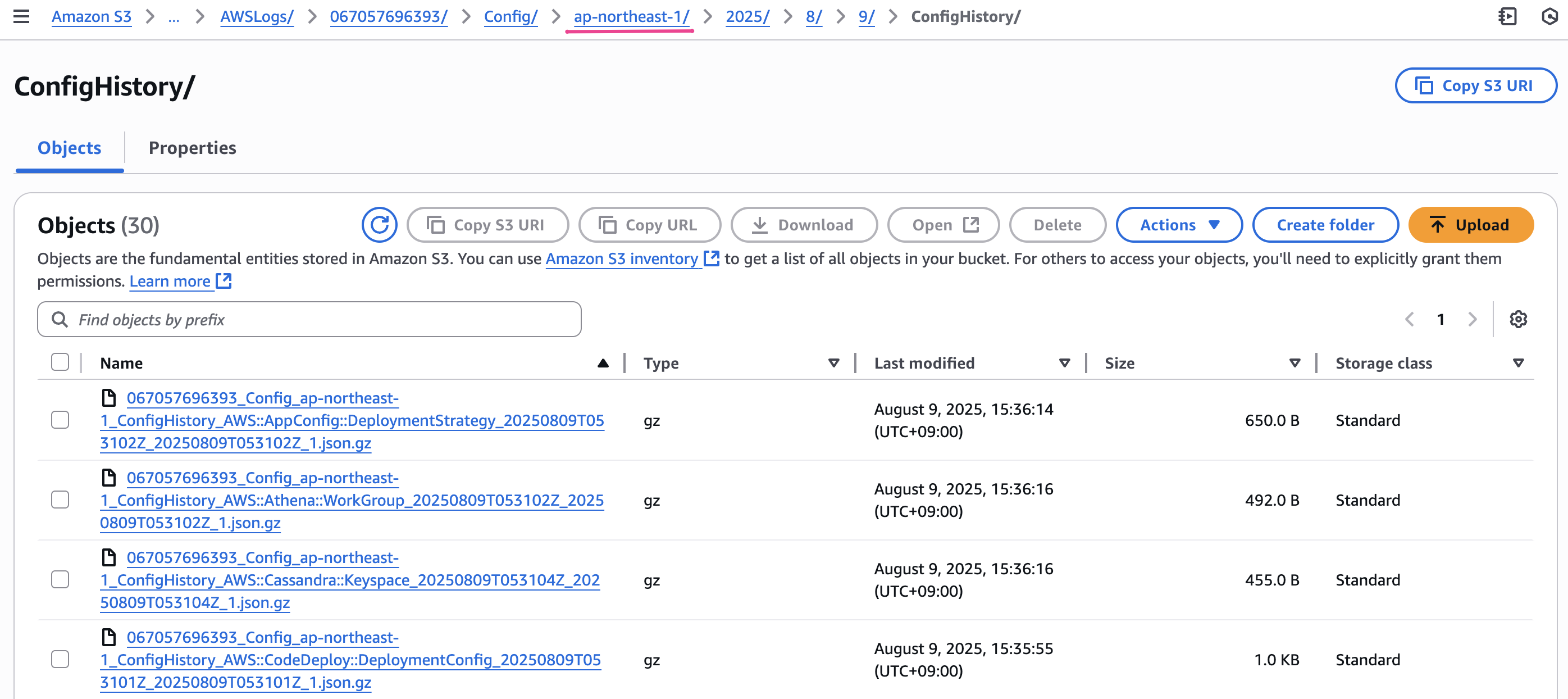 - Configuration snapshot của resource được record đã được khởi động và deliver trong account