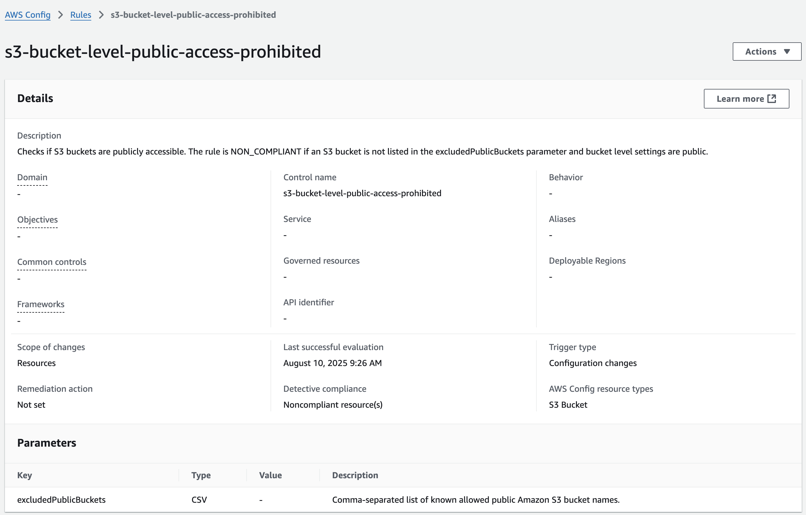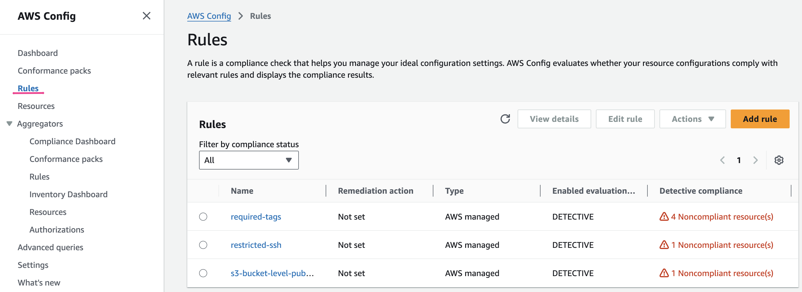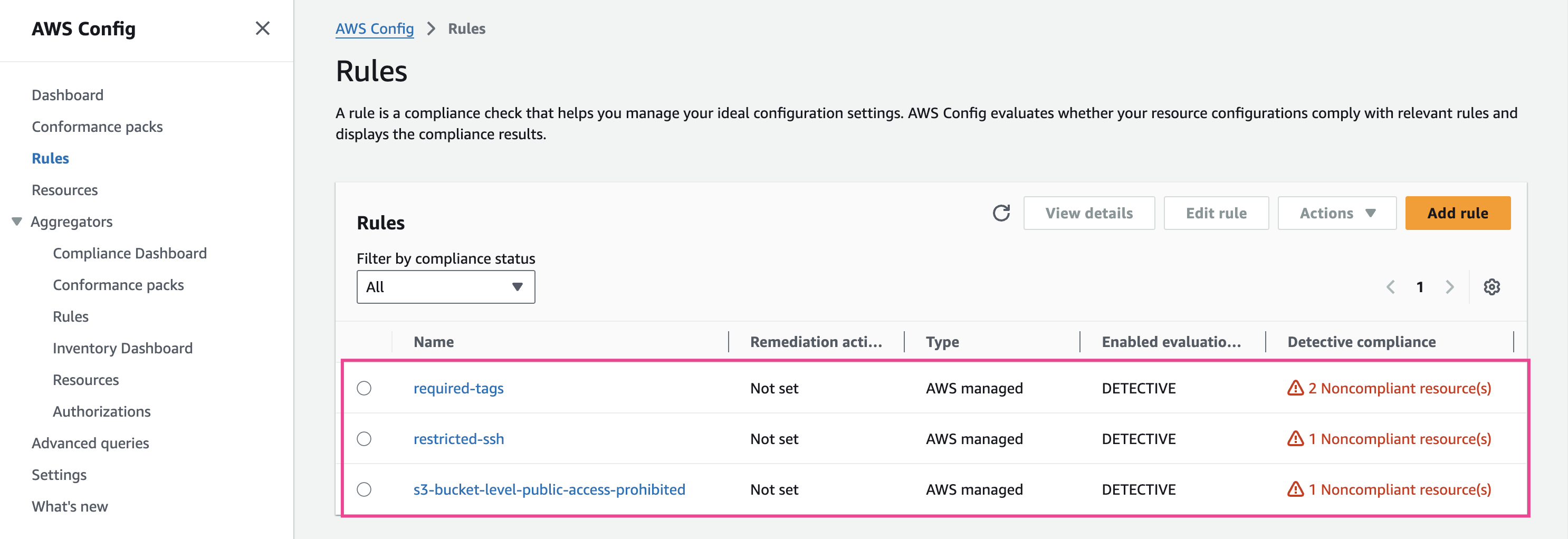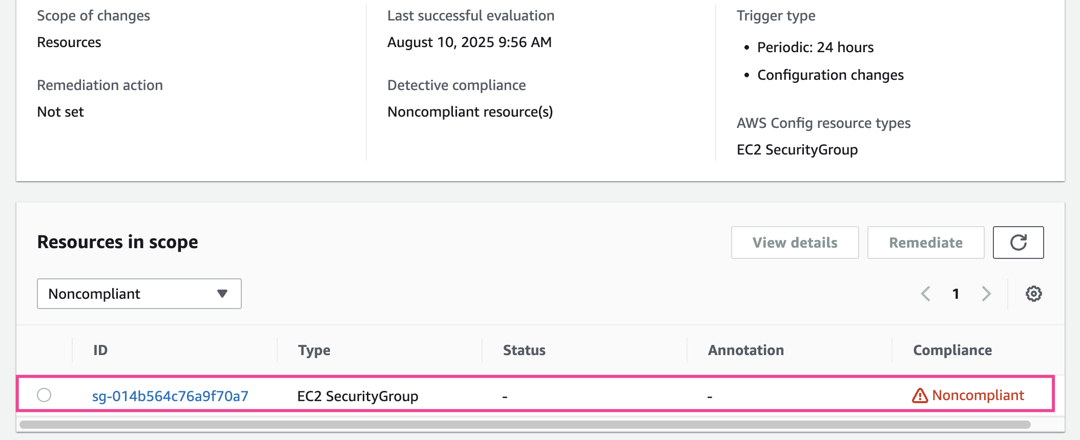 Bạn có thể xác nhận kết quả evaluation trên Management Console. Điều này rất hữu ích để duy trì việc sử dụng AWS environment một cách secure.