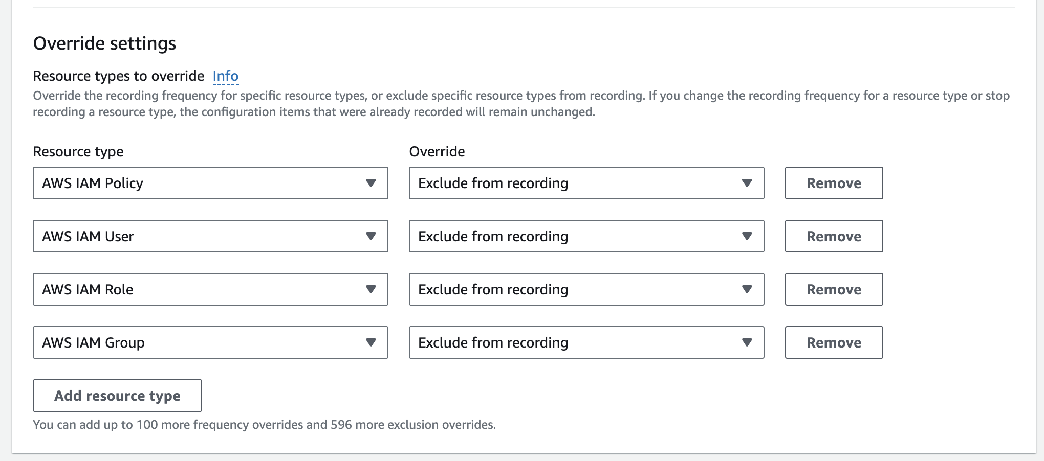 Chỉ record các resource type được chỉ định một cách cụ thể. Setting kết hợp giữa resource type và recording frequency.