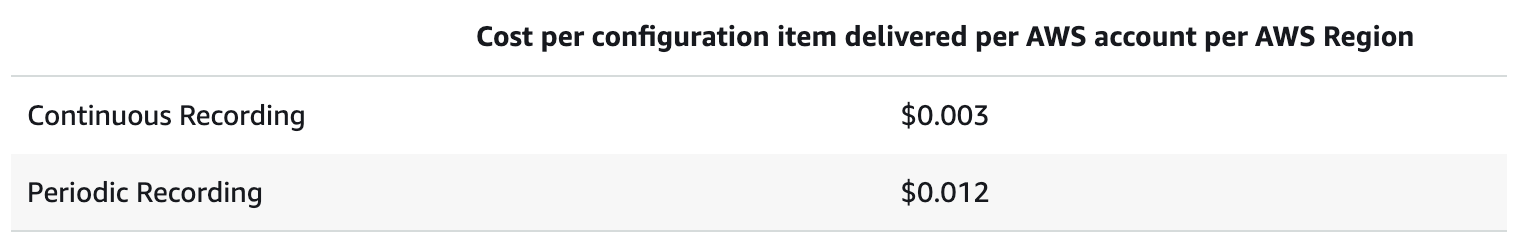 Được tính phí theo từng configuration item được deliver. Configuration item được tạo "khi resource mới được tạo" hoặc "khi có thay đổi trong relationship của resource※".