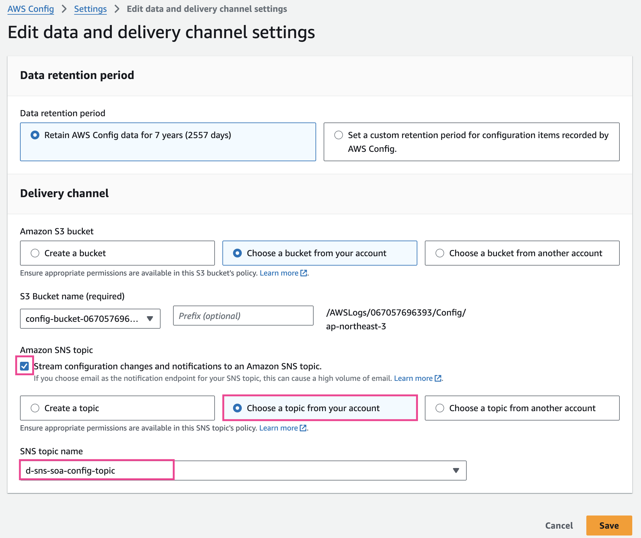 - Stream configuration changes and notifications to an Amazon SNS topic.