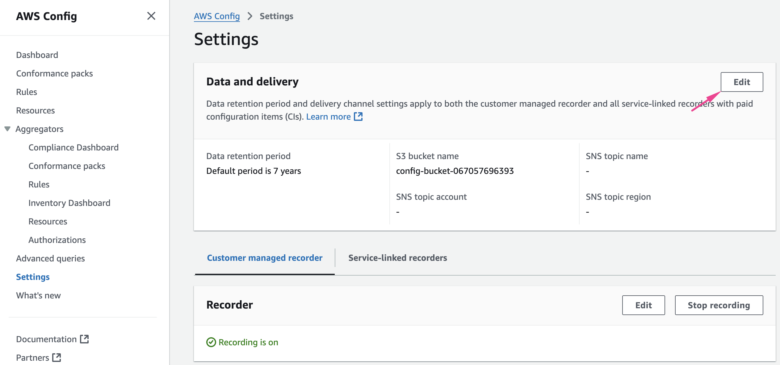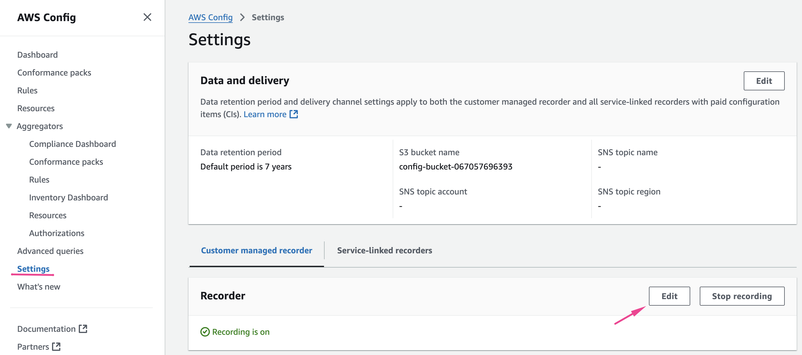 Cốt lõi của Config là liên tục record config của AWS resource.
