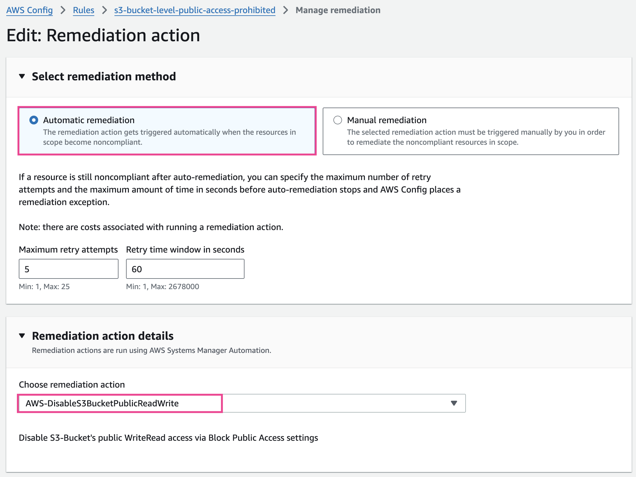 Đợi tầm vài phút bạn sẽ thấy bucket vừa rồi bị báo là Noncompliant và remediation được kích hoạt, kiểm tra S3 bucket sẽ thấy: