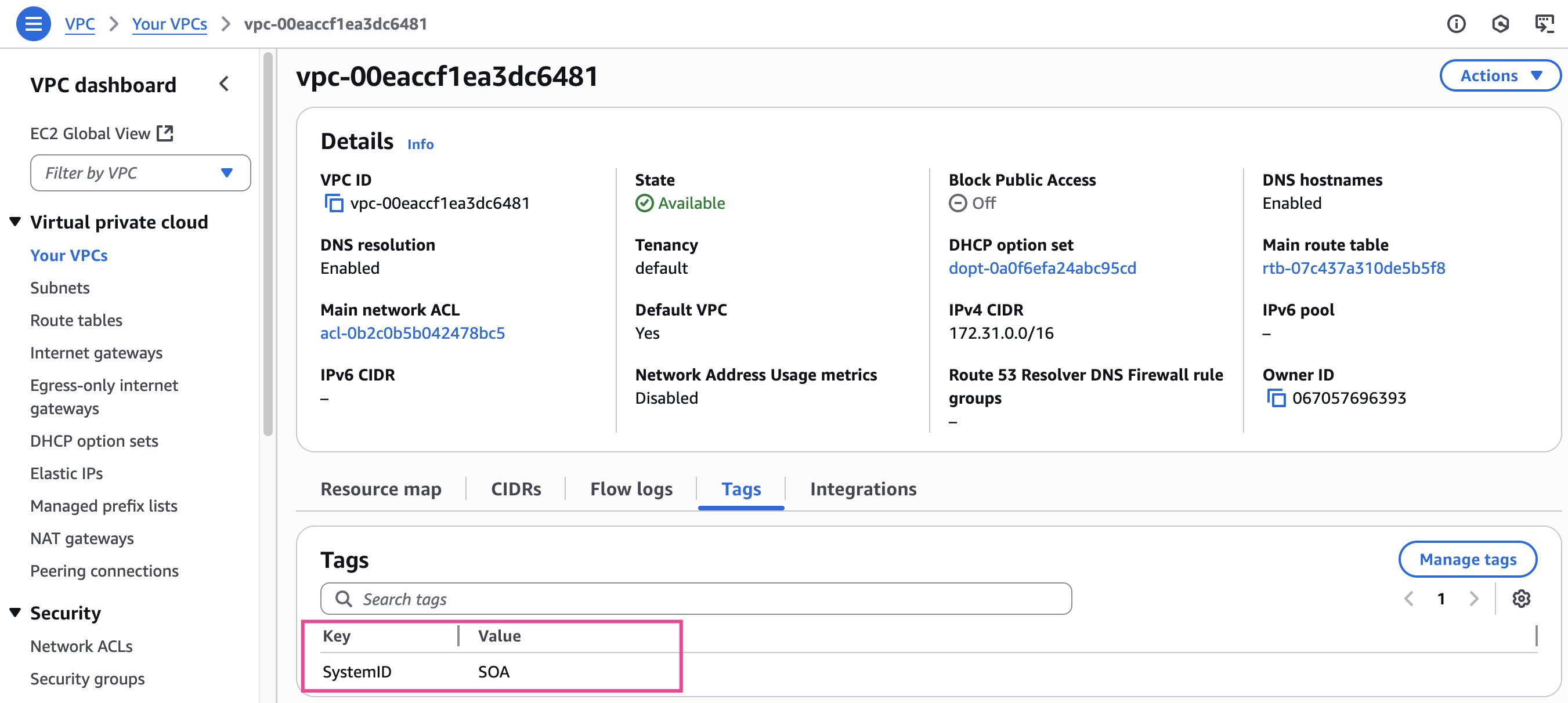 Để test việc này thì chúng ta sẽ config thêm tag cho VPC. Chọn VPC ở Region Osaka hoặc click luôn tại đây