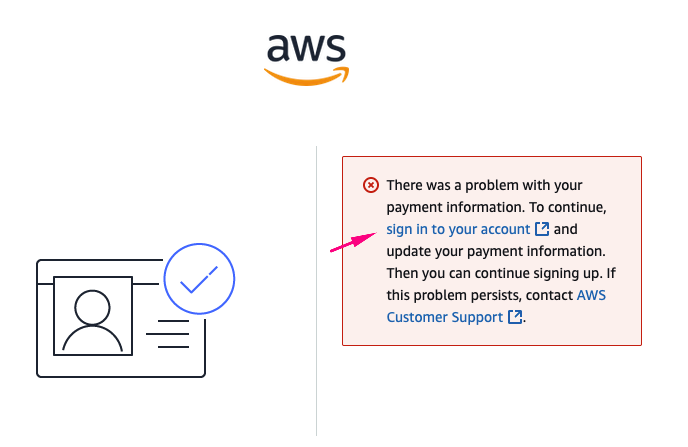 Nếu bạn gặp lỗi verify thông tin thanh toán, click sign in to your account