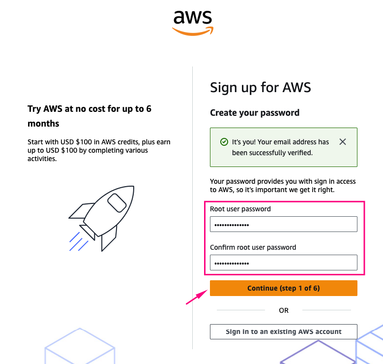 (Giao diện có thể thay đổi, bạn cứ tiếp tục cho đến khi hoàn thành quá trình tạo AWS Account)