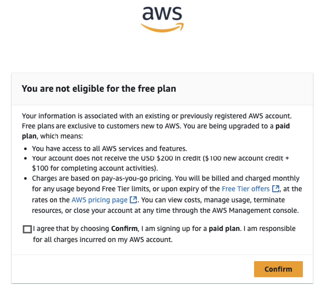 Điều kiện để đăng ký tài khoản AWS Free Plan