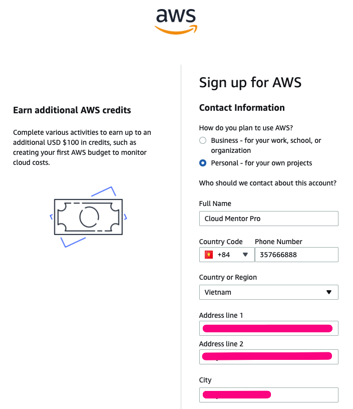 - Số đt cũng chưa dùng để đk tài khoản AWS nào trước đây