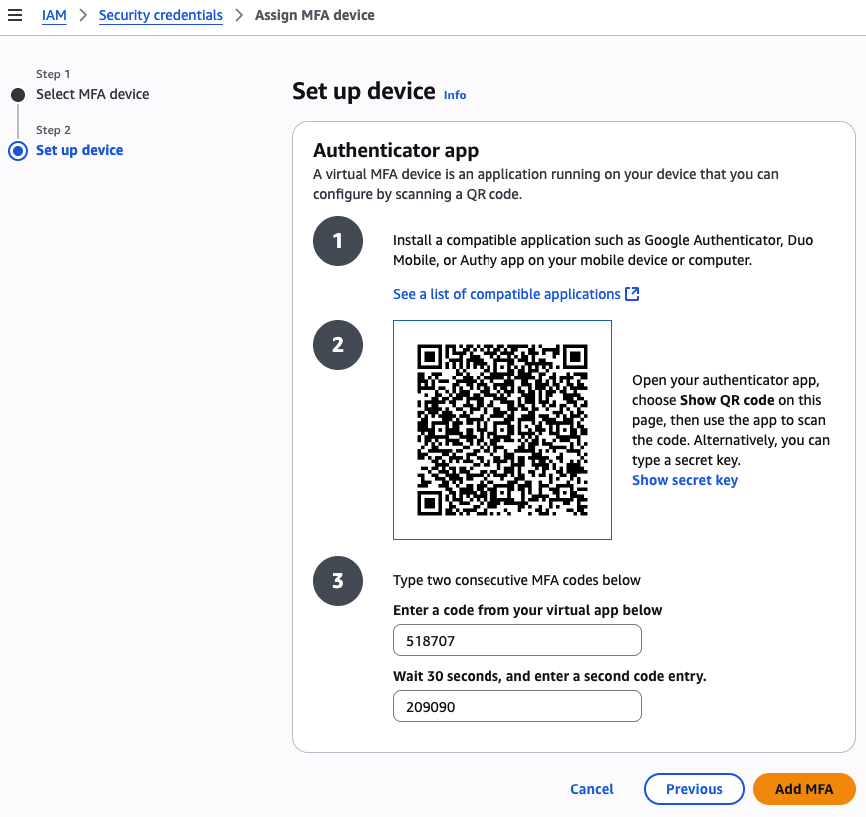 Làm theo hướng dẫn bên dưới để Add MFA Device