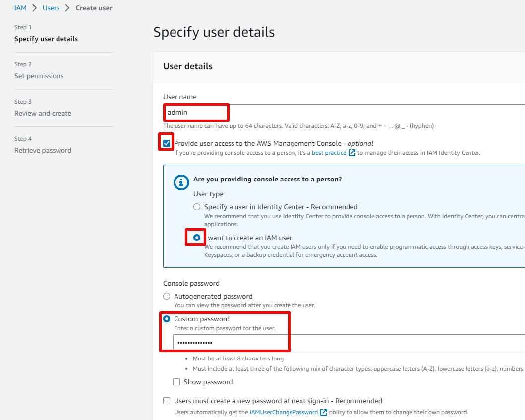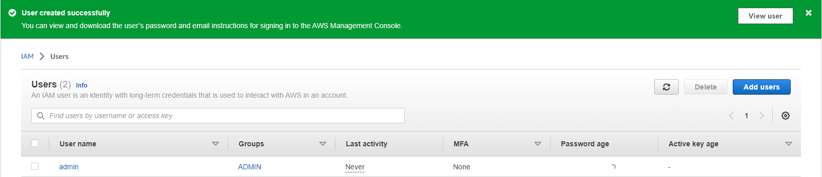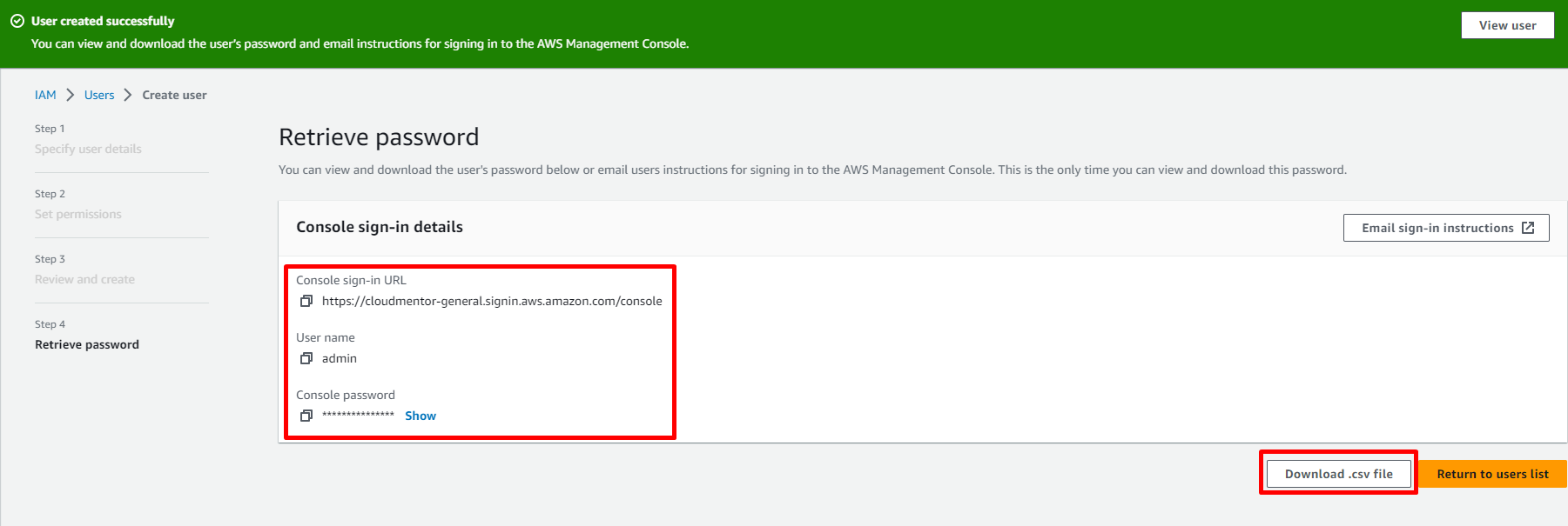 Nhớ download thông tin user vừa tạo về máy phòng trường hợp quên password đã đặt lúc nãy.