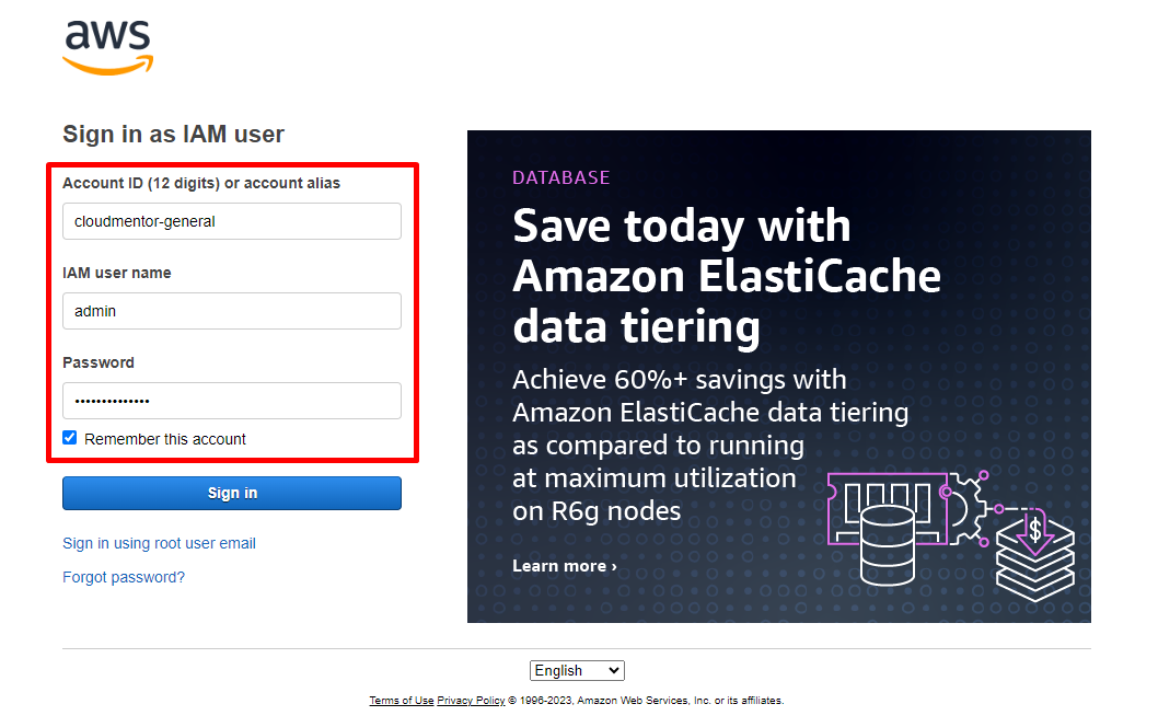 Nếu lỡ không download file csv thì phải nhập thông tin Account ID hoặc alias (đã setting ở Step 2: The first setting)