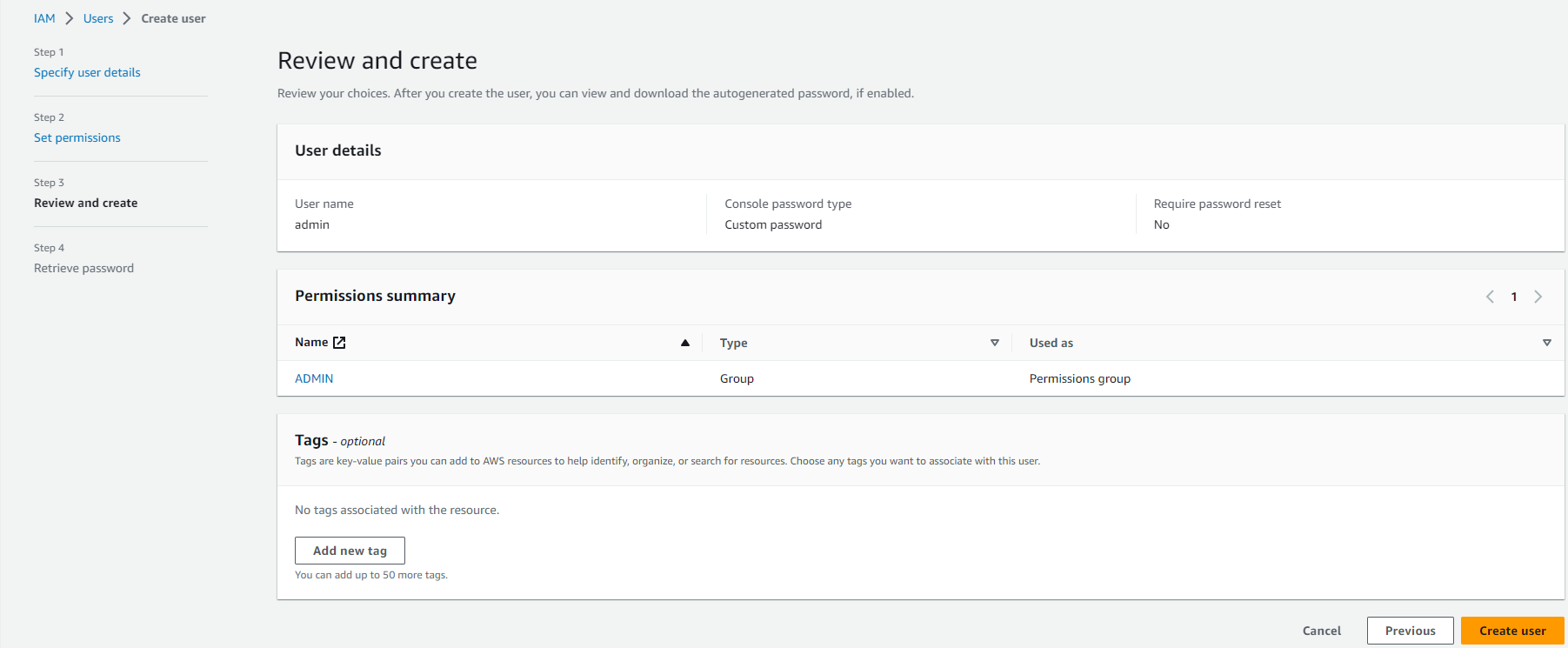 Ở bài này, chúng ta sẽ tạo một group ADMIN có quyền AdministratorAccess (full quyền) và 1 user: admin thuộc group ADMIN.