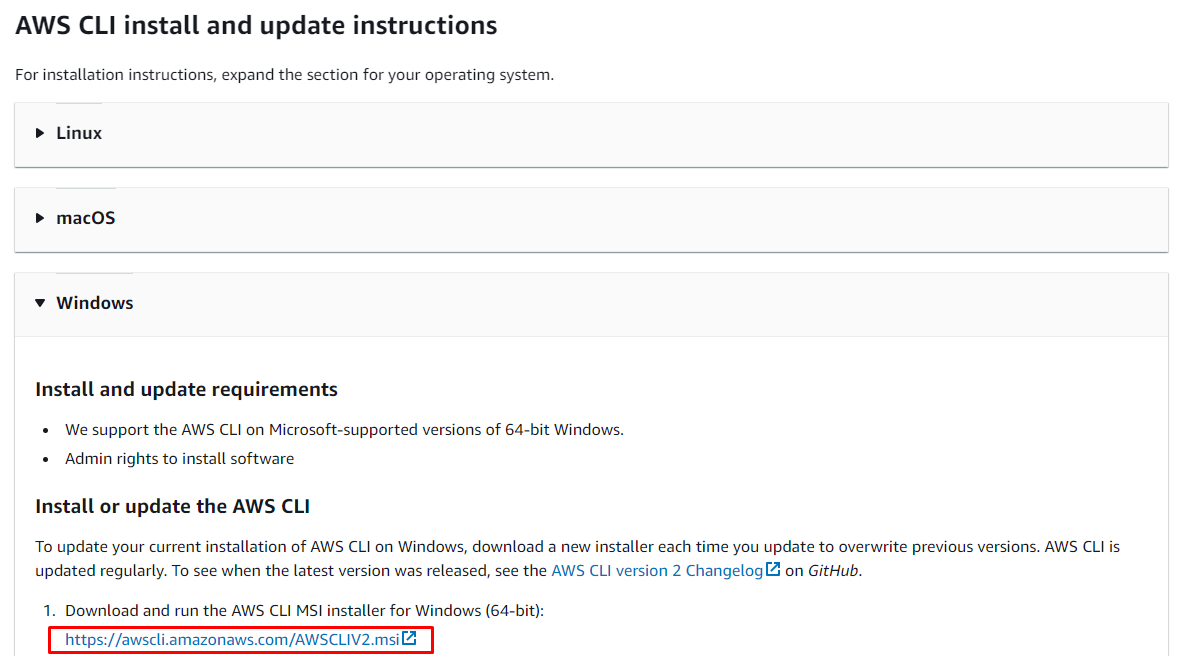 - Truy cập link sau: https://docs.aws.amazon.com/cli/latest/userguide/getting-started-install.html