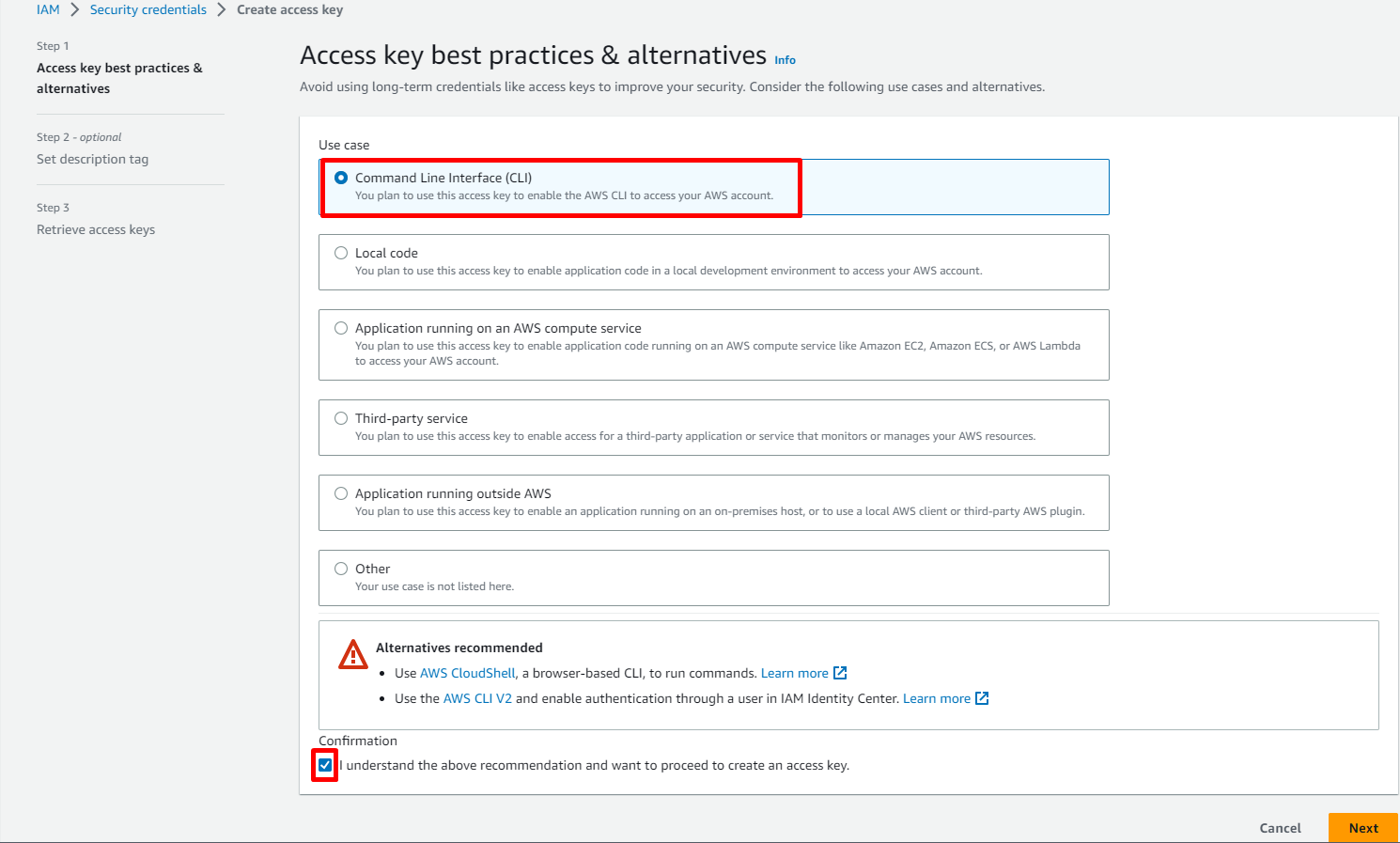 Click Create access key