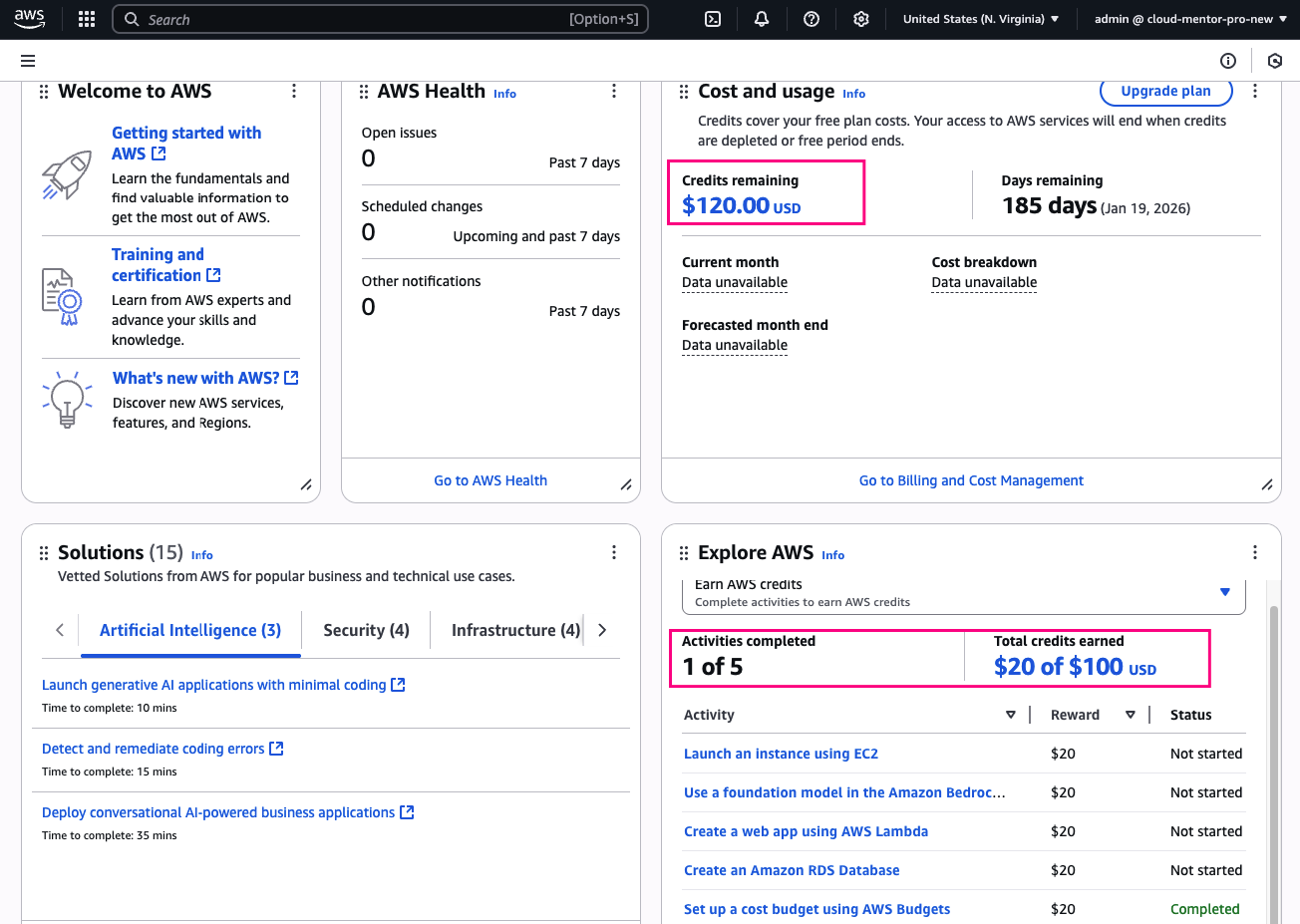 Vậy là bạn đã hoàn thành tạo Budget. (nhiệm vụ này mang về cho bạn 20 USD credits)